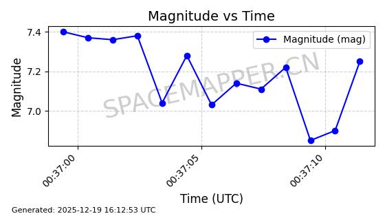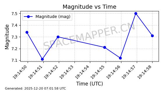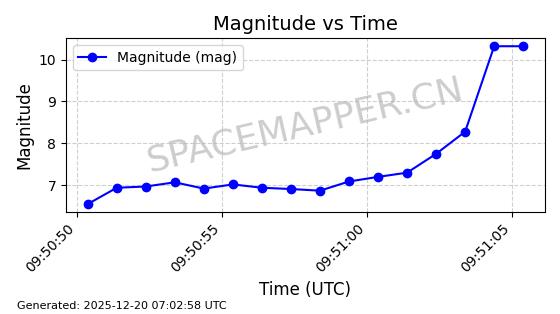 | STARLINK-32182 | 60319 | 60319 | 2024-07-28 同日期轨道 2024-133U 同批次轨道 | 在轨 | 94分钟 | 53.1615 | 474.44 | 476.04 | 0.0001166 | 2025-12-19 04:16:51 | ||