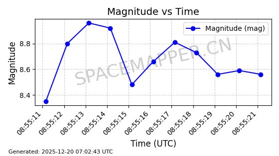 | STARLINK-32108 | 59682 | 59682 | 2024-05-08 同日期轨道 2024-086A 同批次轨道 | 在轨 | 94分钟 | 42.9989 | 482.312 | 483.804 | 0.0001087 | 2025-12-19 03:46:17 | ||
