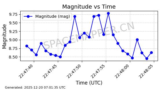 | STARLINK-32130 | 60585 | 60585 | 2024-08-20 同日期轨道 2024-150C 同批次轨道 | 在轨 | 94分钟 | 53.1631 | 474.314 | 476.156 | 0.0001343 | 2025-12-19 04:38:01 | ||