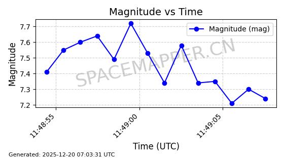 | STARLINK-32154 | 60276 | 60276 | 2024-07-27 同日期轨道 2024-131X 同批次轨道 | 在轨 | 94分钟 | 53.1591 | 474.573 | 475.833 | 0.0000918 | 2025-12-18 12:13:09 | ||