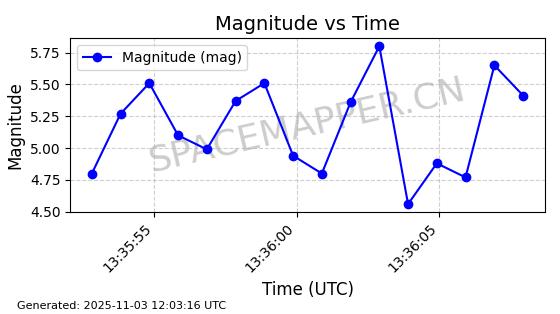| STARLINK-32272 | 60735 | 60735 | 2024-08-28 同日期轨道 2024-152R 同批次轨道 | 在轨 | 94分钟 | 53.1617 | 474.059 | 475.959 | 0.0001385 | 2025-11-01 12:55:51 | ||