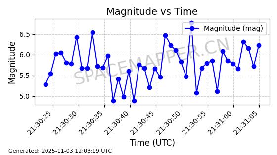| STARLINK-32221 | 60342 | 60342 | 2024-08-02 同日期轨道 2024-136P 同批次轨道 | 在轨 | 94分钟 | 53.1612 | 474.103 | 476.333 | 0.0001626 | 2025-11-01 08:03:15 | ||