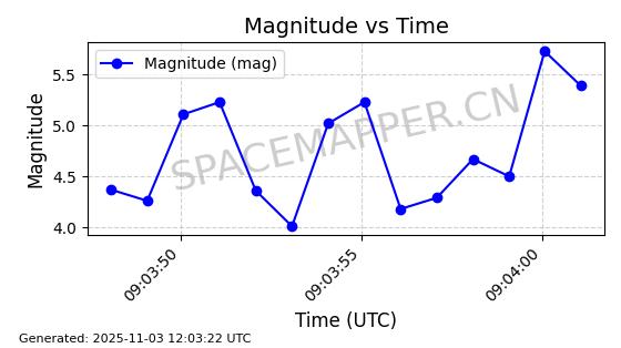 | STARLINK-32277 | 60376 | 60376 | 2024-08-04 同日期轨道 2024-138X 同批次轨道 | 在轨 | 94分钟 | 53.1593 | 474.29 | 476.214 | 0.0001403 | 2025-11-01 09:37:40 | ||