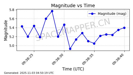 | STARLINK-32238 | 61661 | 61661 | 2024-10-26 同日期轨道 2024-193A 同批次轨道 | 在轨 | 94分钟 | 53.1605 | 474.279 | 476.167 | 0.0001376 | 2025-11-01 08:15:35 | ||