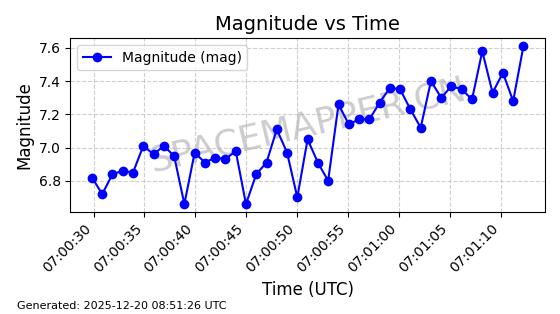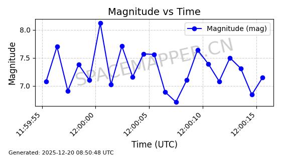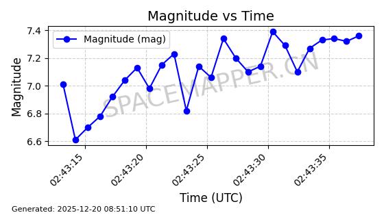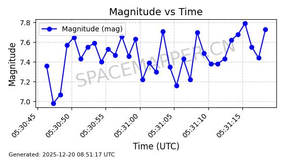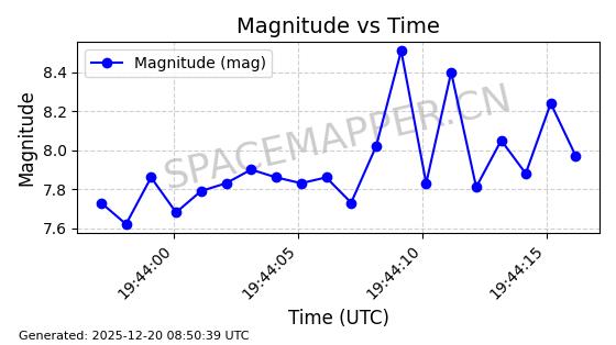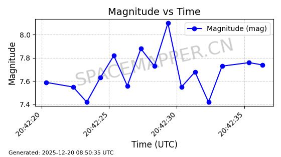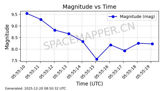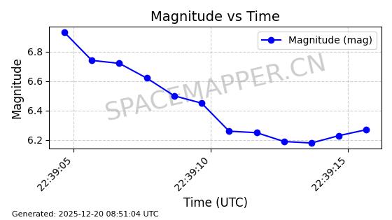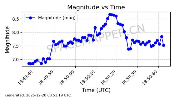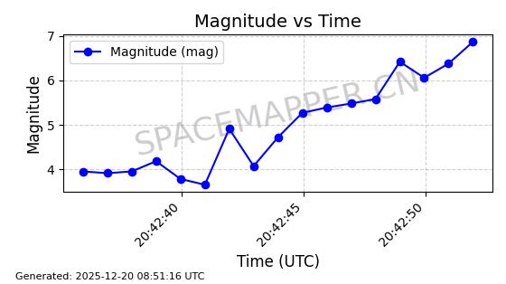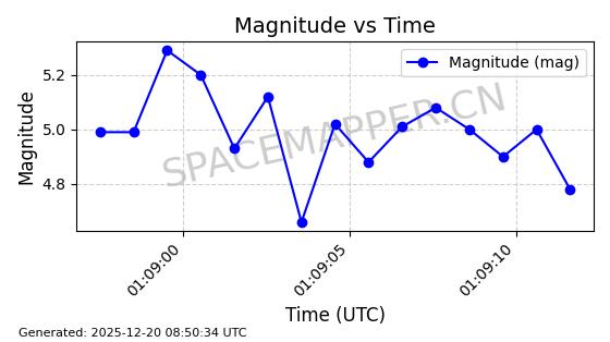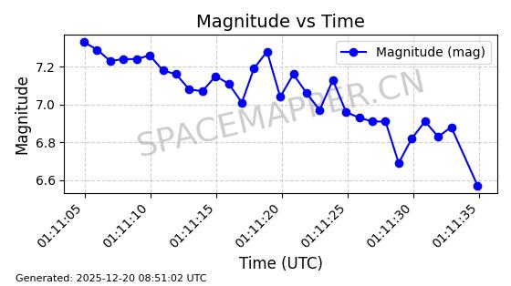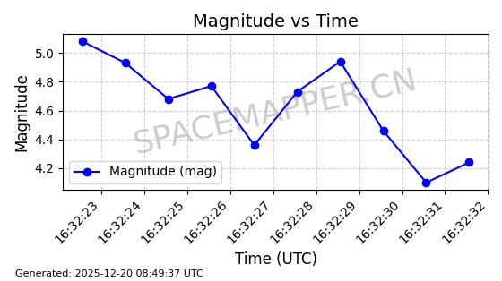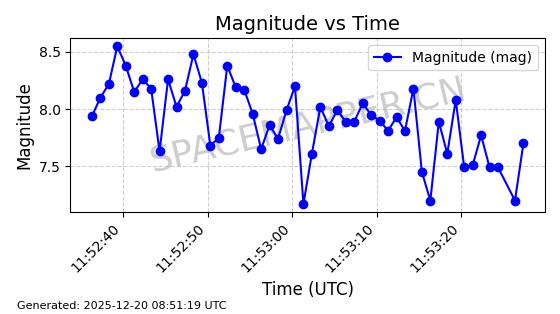 | STARLINK-32372 | 61960 | 61960 | 2024-11-14 同日期轨道 2024-210B 同批次轨道 | 在轨 | 94分钟 | 43.0001 | 482.1 | 483.884 | 0.0001300 | 2025-12-19 04:48:23 | ||