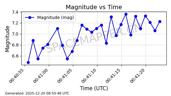 | STARLINK-32346 | 61849 | 61849 | 2024-11-07 同日期轨道 2024-202E 同批次轨道 | 在轨 | 94分钟 | 43.0019 | 482.253 | 483.907 | 0.0001205 | 2025-12-19 04:30:43 | ||