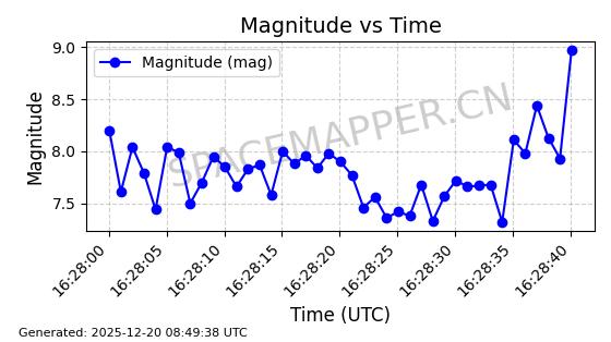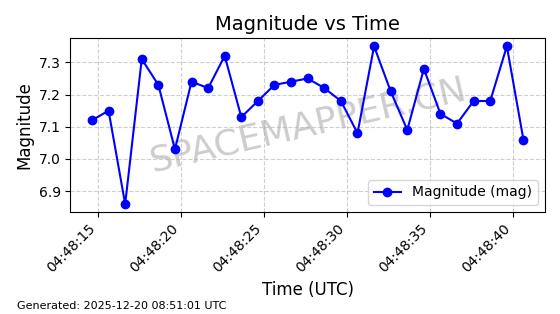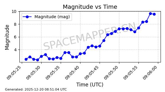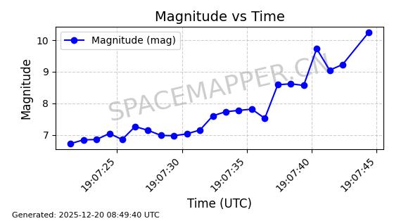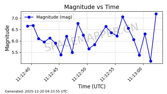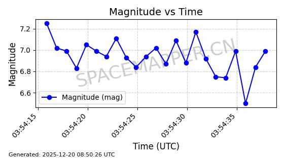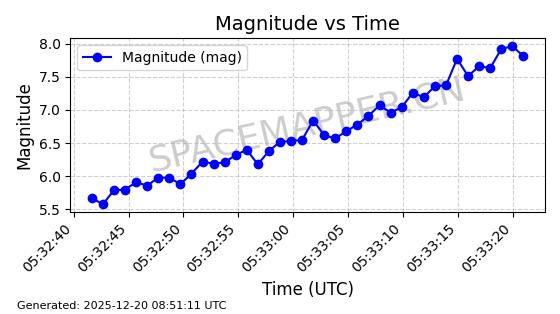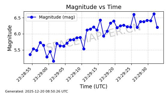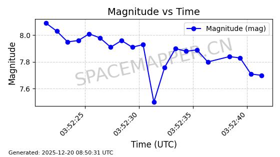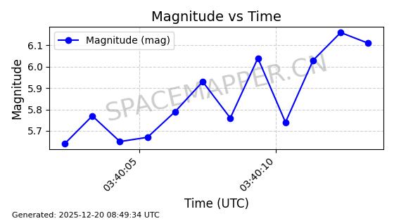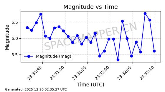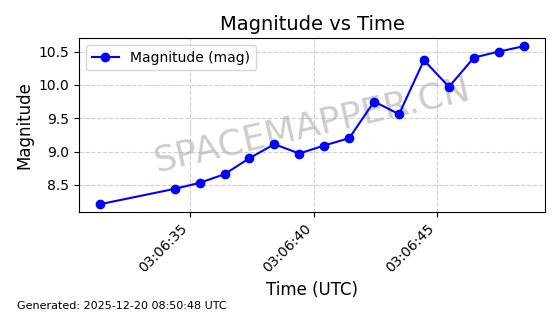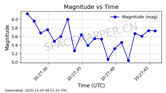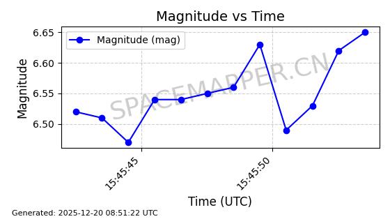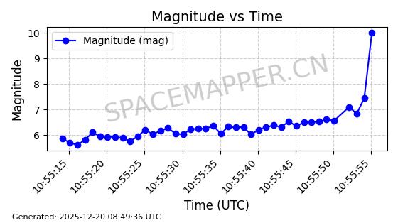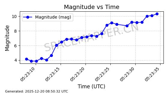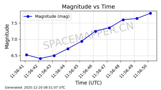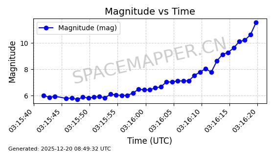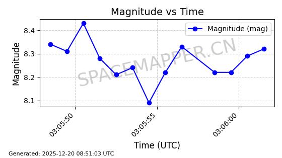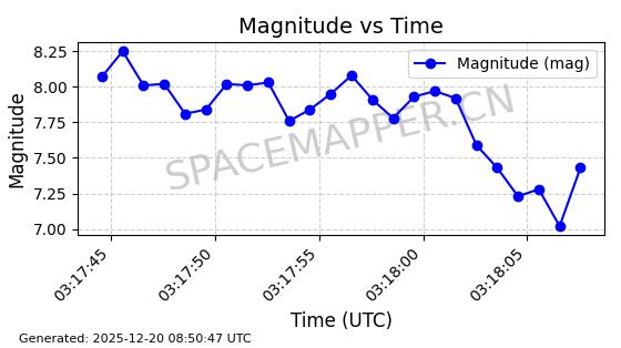 | STARLINK-32325 | 61588 | 61588 | 2024-10-18 同日期轨道 2024-187Q 同批次轨道 | 在轨 | 94分钟 | 53.1607 | 474.352 | 476.13 | 0.0001297 | 2025-12-18 15:31:13 | ||