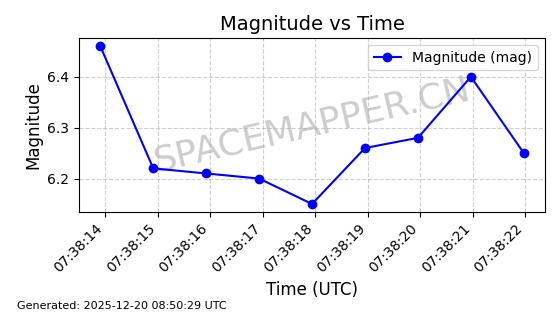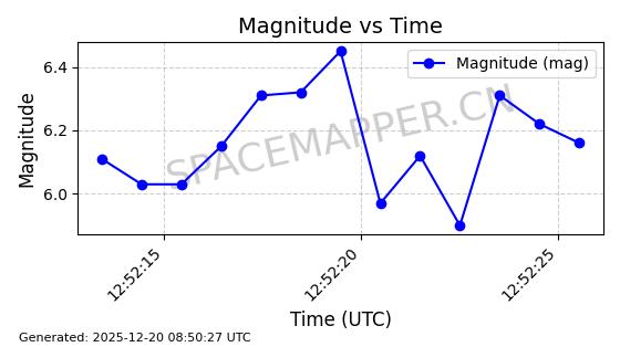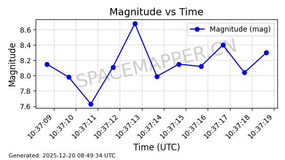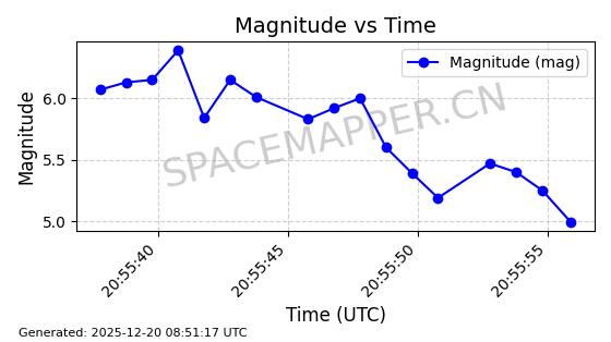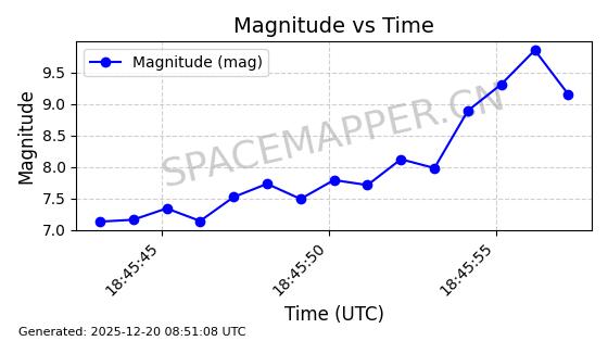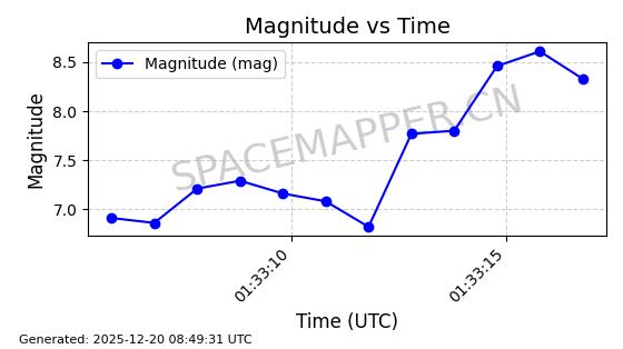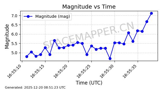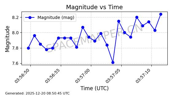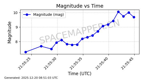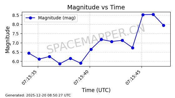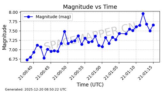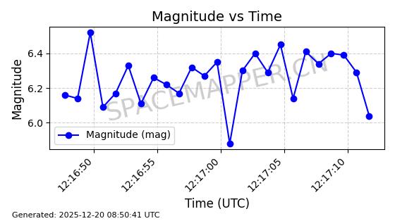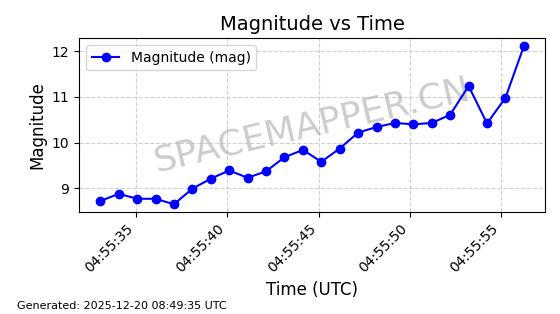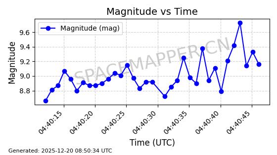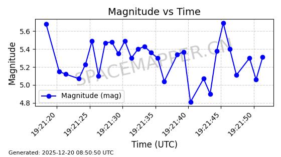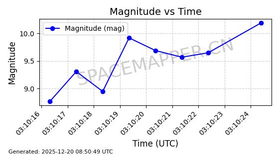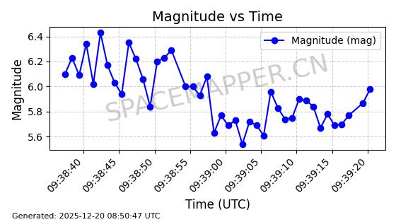 | STARLINK-32465 | 61716 | 61716 | 2024-10-30 同日期轨道 2024-196K 同批次轨道 | 在轨 | 94分钟 | 53.1609 | 474.262 | 476.206 | 0.0001418 | 2025-12-18 15:22:16 | ||