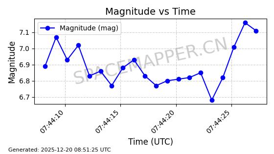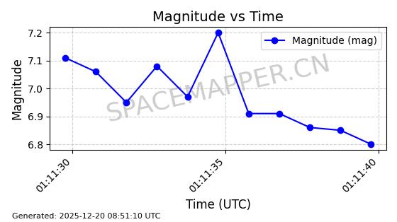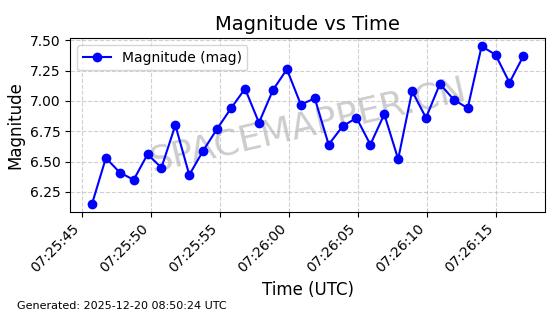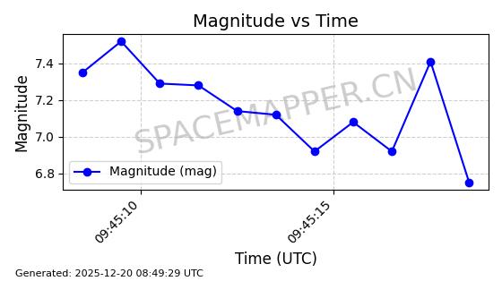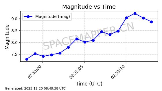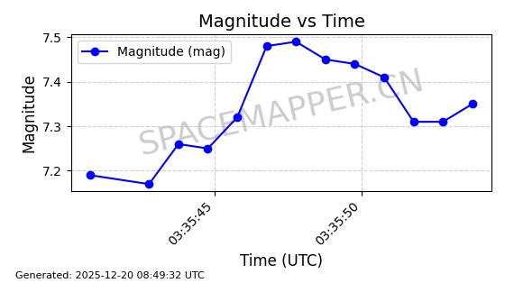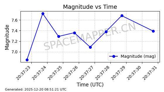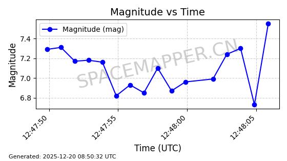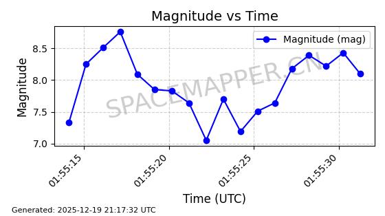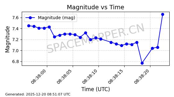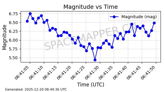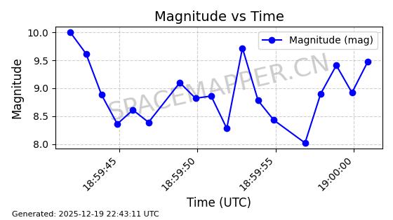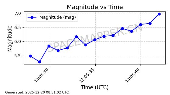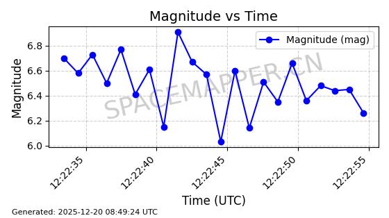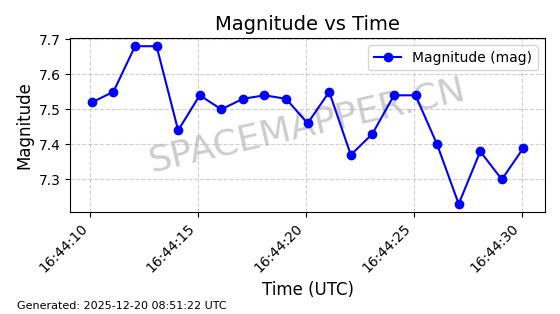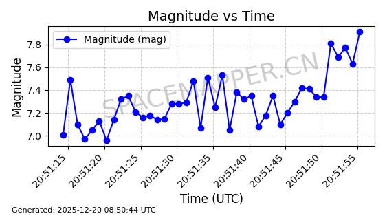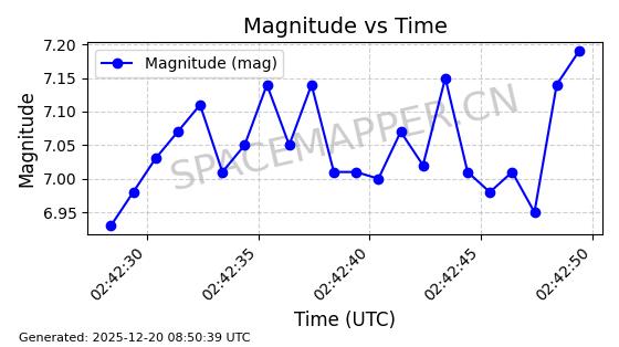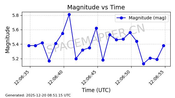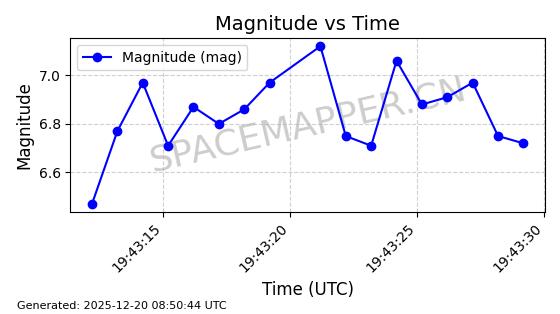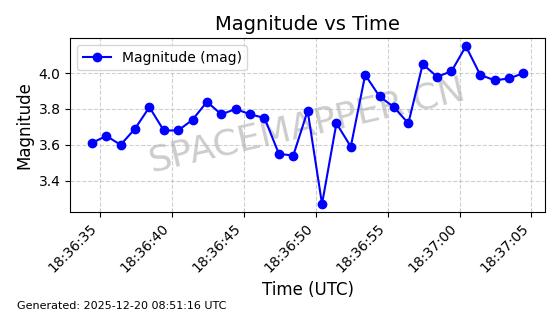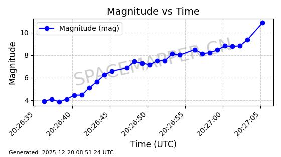 | STARLINK-32486 | 61854 | 61854 | 2024-11-07 同日期轨道 2024-202K 同批次轨道 | 在轨 | 94分钟 | 43.0018 | 482.288 | 483.774 | 0.0001082 | 2025-12-19 00:36:06 | ||