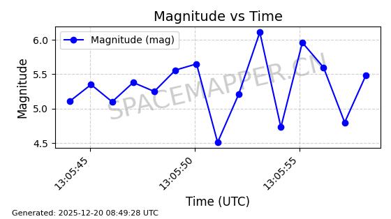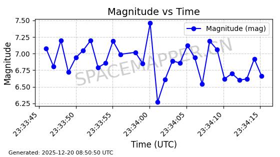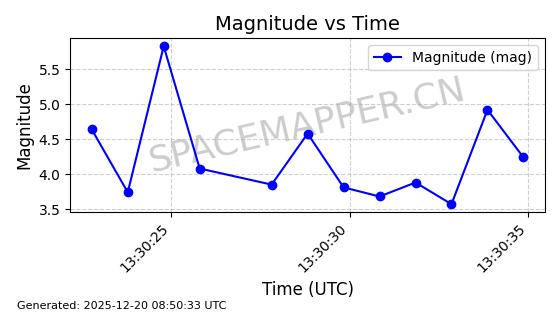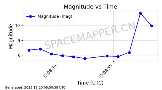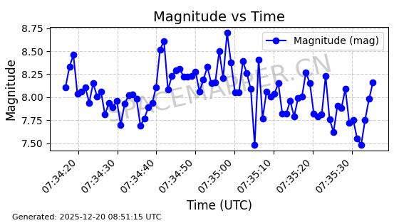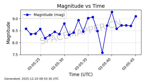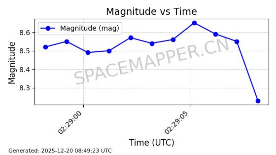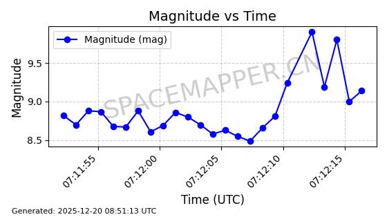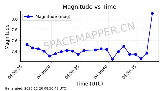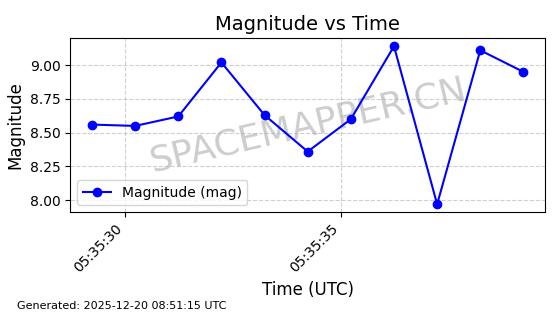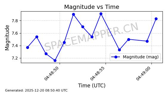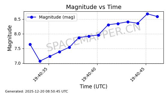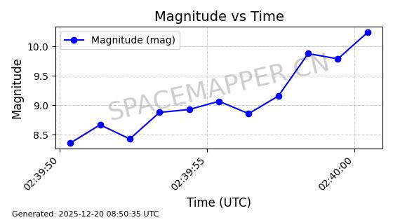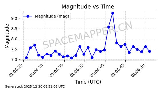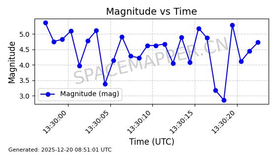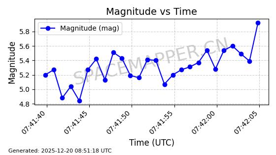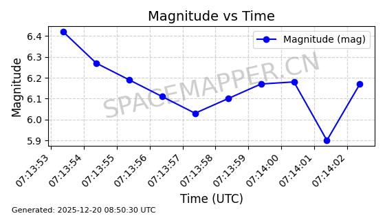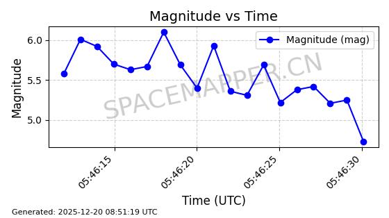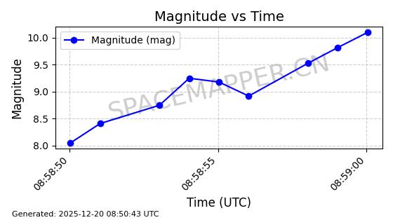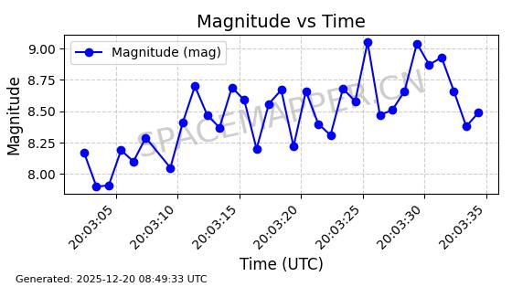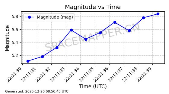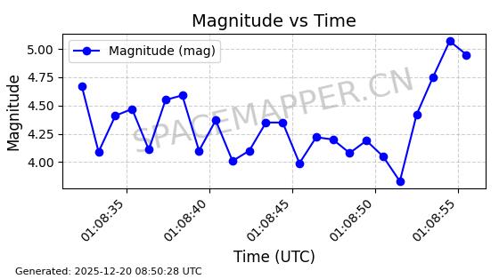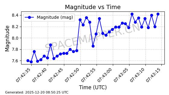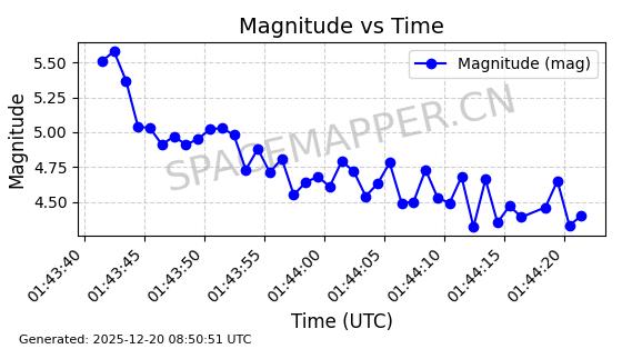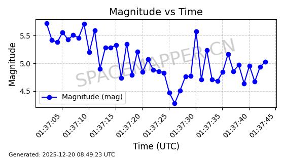 | STARLINK-32466 | 61859 | 61859 | 2024-11-07 同日期轨道 2024-202Q 同批次轨道 | 在轨 | 94分钟 | 43.0015 | 482.591 | 483.577 | 0.0000718 | 2025-12-19 05:44:29 | ||