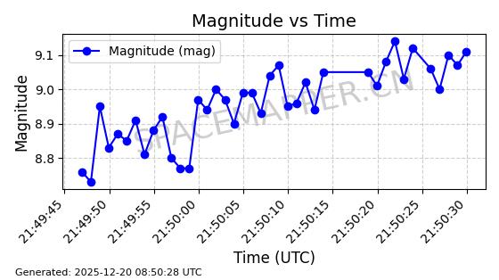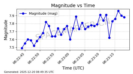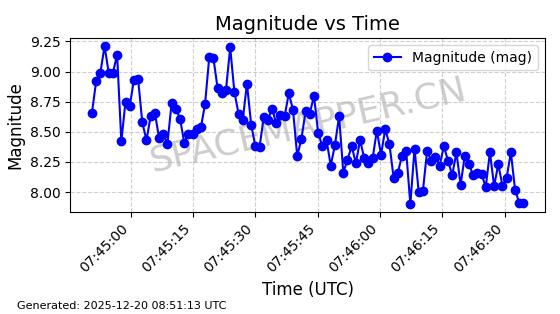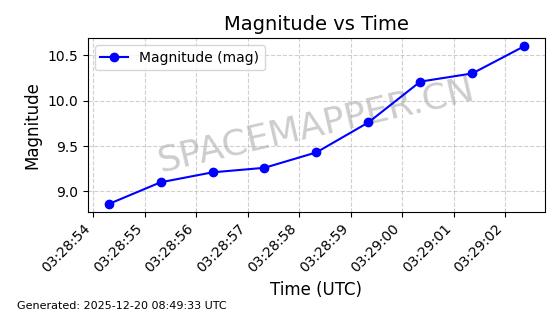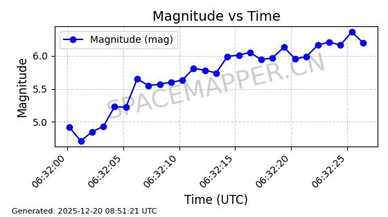 | STARLINK-32428 | 61666 | 61666 | 2024-10-26 同日期轨道 2024-193F 同批次轨道 | 在轨 | 94分钟 | 53.1610 | 474.067 | 476.415 | 0.0001713 | 2025-12-18 14:24:34 | ||