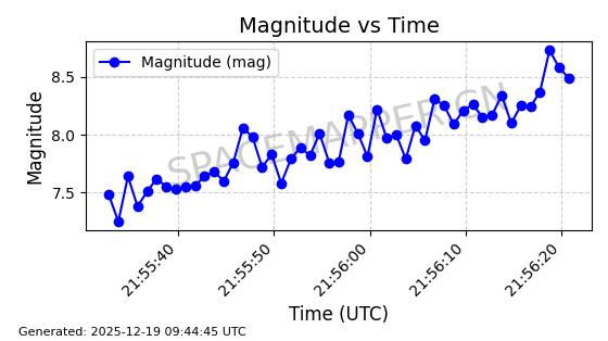 | STARLINK-32419 | 61637 | 61637 | 2024-10-23 同日期轨道 2024-191S 同批次轨道 | 在轨 | 94分钟 | 43.0007 | 482.134 | 483.904 | 0.0001289 | 2025-12-19 03:04:10 | ||
