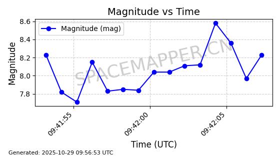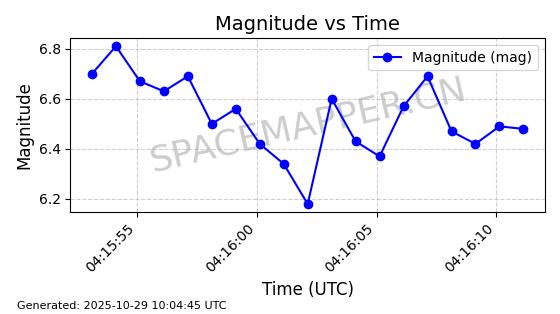 | STARLINK-11351 | 61886 | 61886 | 2024-11-09 同日期轨道 2024-204N 同批次轨道 | 在轨 | 92分钟 | 53.1582 | 358.941 | 360.483 | 0.0001143 | 2025-10-27 04:59:36 | ||