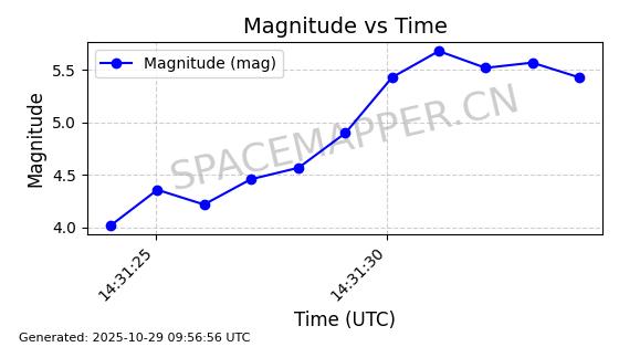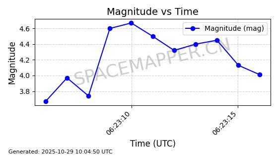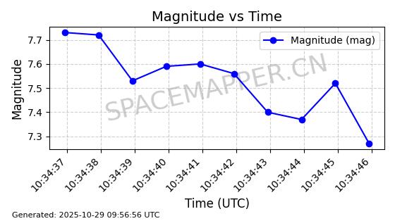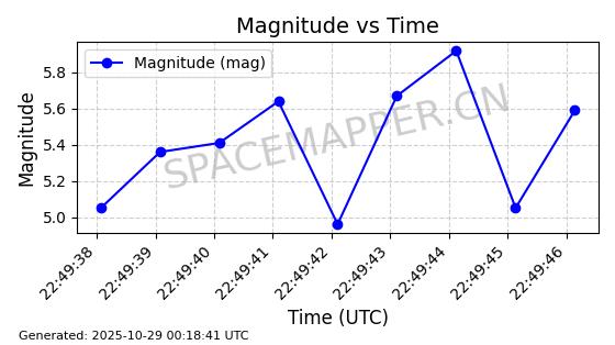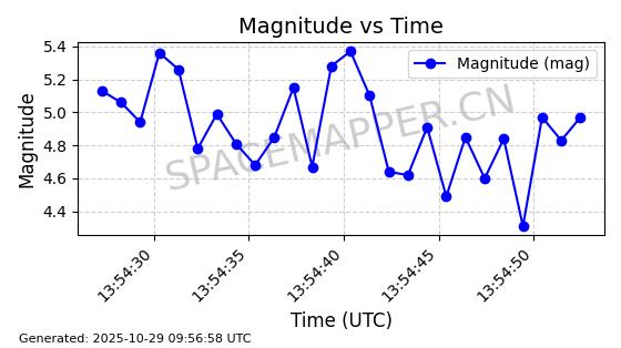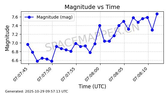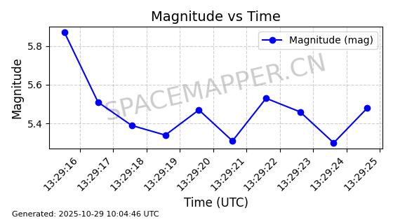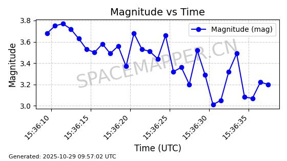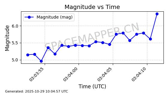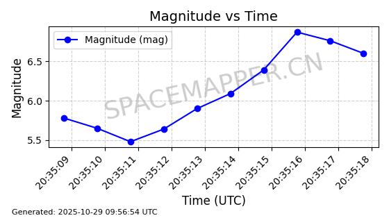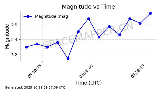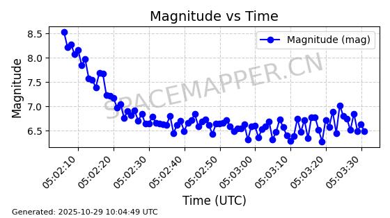 | STARLINK-11340 | 61690 | 61690 | 2024-10-30 同日期轨道 2024-195D 同批次轨道 | 在轨 | 92分钟 | 53.1582 | 358.749 | 360.703 | 0.0001450 | 2025-10-27 06:06:42 | ||