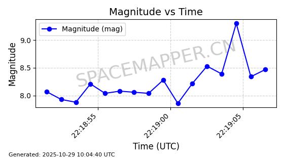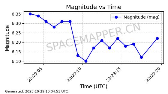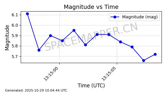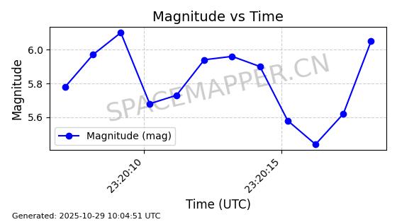 | STARLINK-1146 | 45094 | 45094 | 2020-01-29 同日期轨道 2020-006BC 同批次轨道 | 已陨落 | 88分钟 | 53.0300 | 160.716 | 168.344 | 0.0005828 | 2025-10-04 03:12:14 | ||