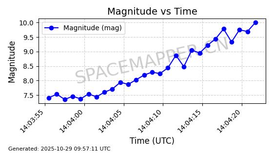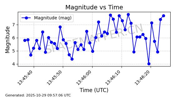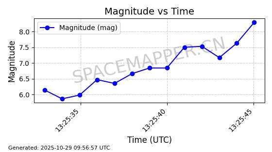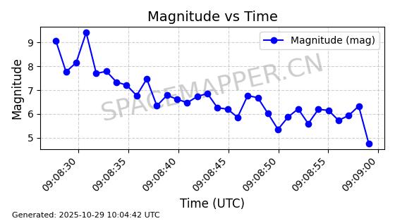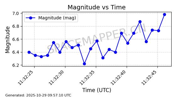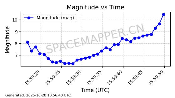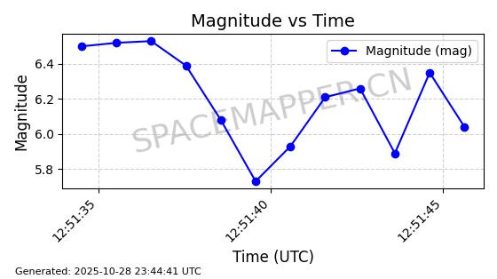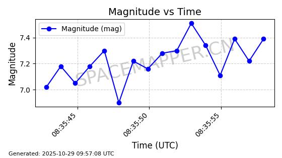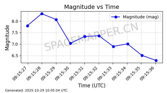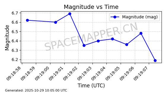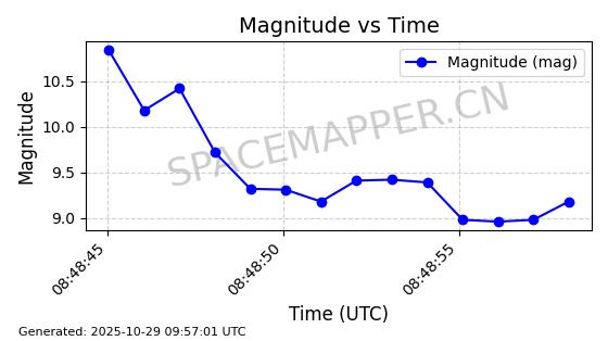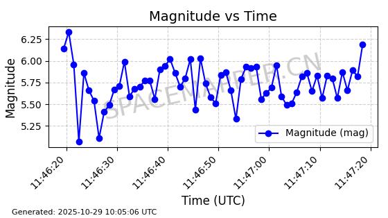 | STARLINK-11395 | 61951 | 61951 | 2024-11-14 同日期轨道 2024-209N 同批次轨道 | 在轨 | 92分钟 | 53.1570 | 358.24 | 359.898 | 0.0001229 | 2025-10-27 12:36:17 | ||