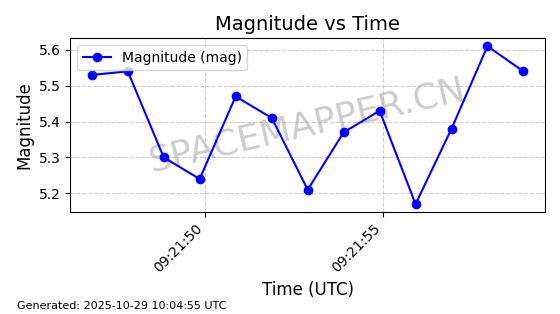 | STARLINK-11348 | 61694 | 61694 | 2024-10-30 同日期轨道 2024-195H 同批次轨道 | 在轨 | 92分钟 | 53.1580 | 358.871 | 360.599 | 0.0001282 | 2025-10-27 11:45:11 | ||