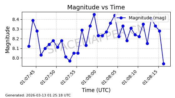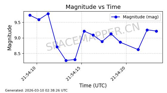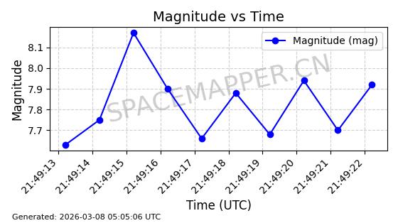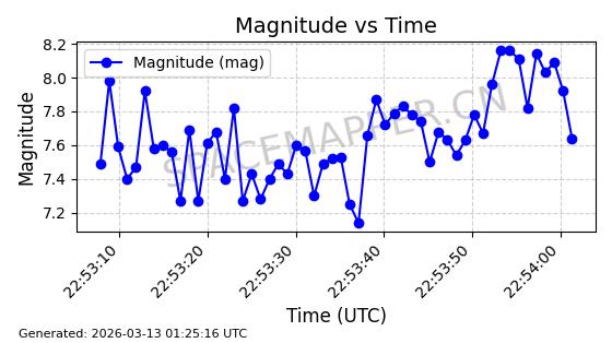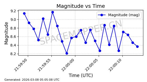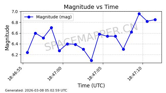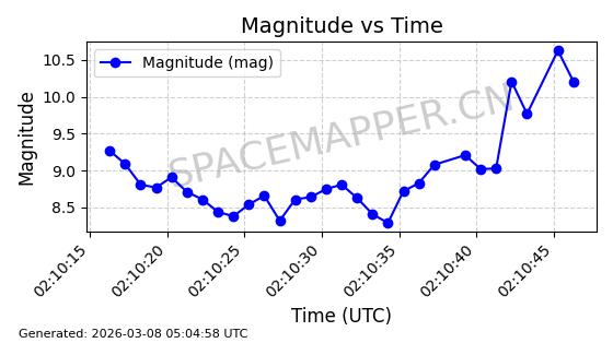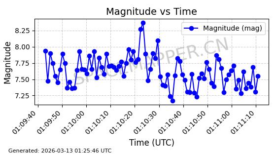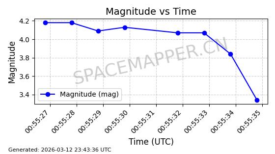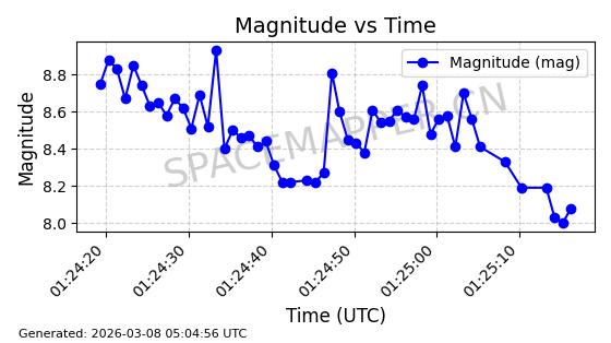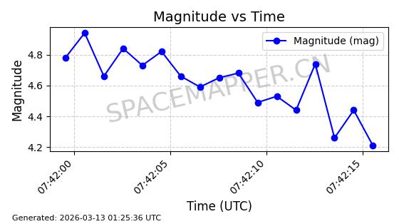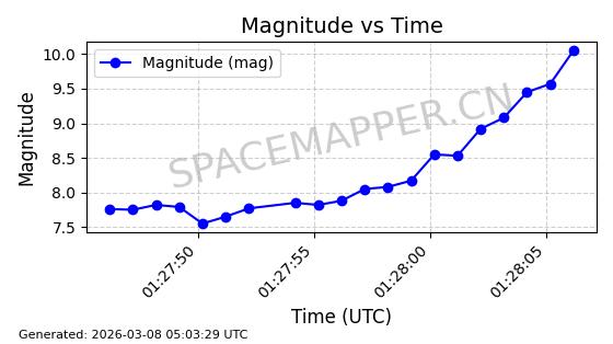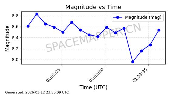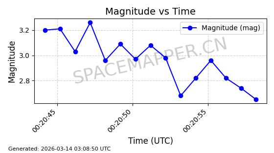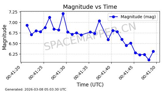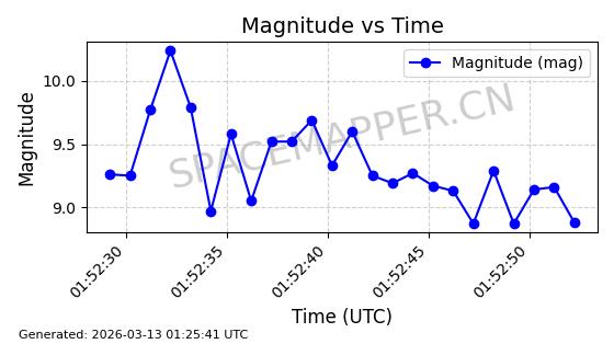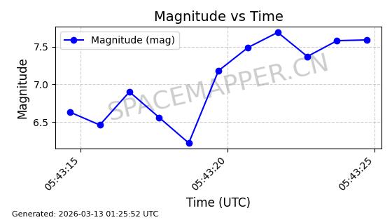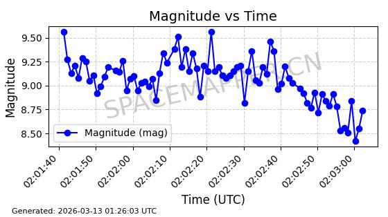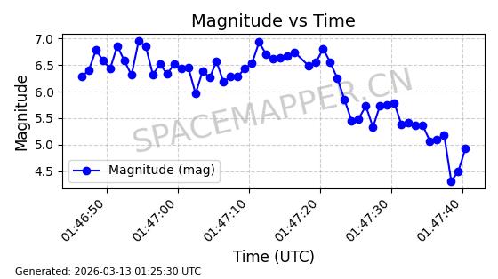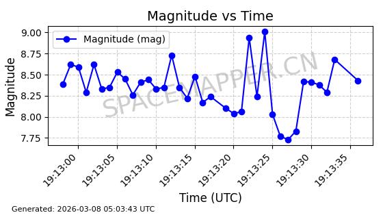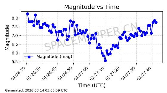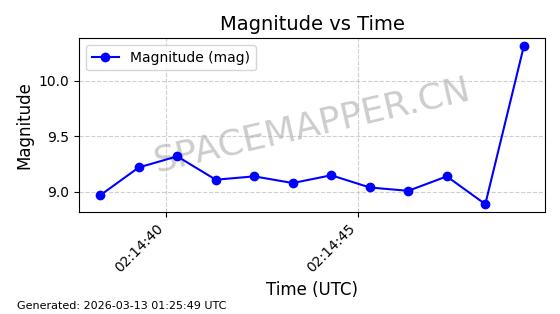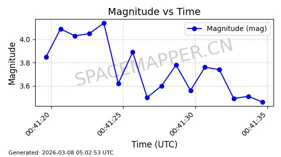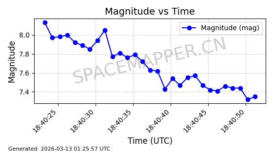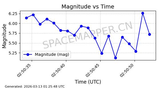 | STARLINK-1318 | 45416 | 45416 | 2020-03-18 同日期轨道 2020-019BJ 同批次轨道 | 已陨落 | 87分钟 | 53.0199 | 148.834 | 151.666 | 0.0002168 | 2026-03-01 13:56:15 | ||
