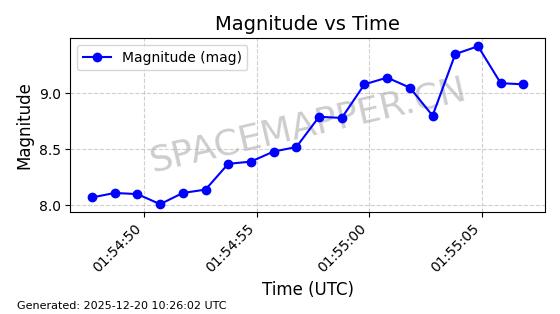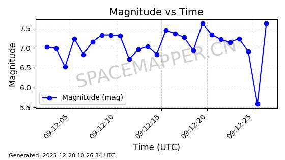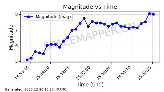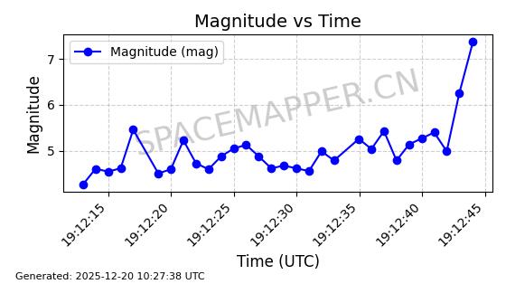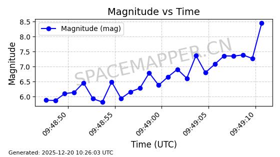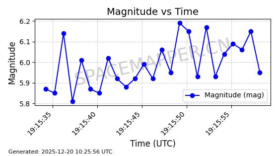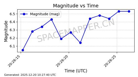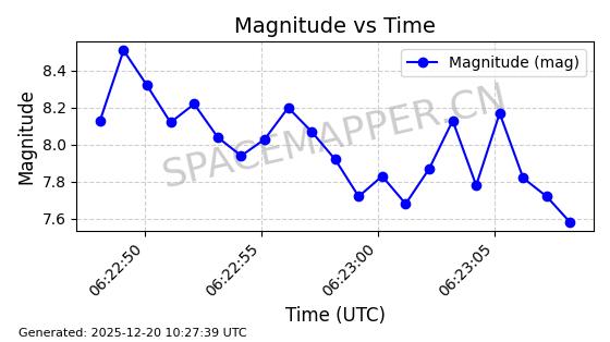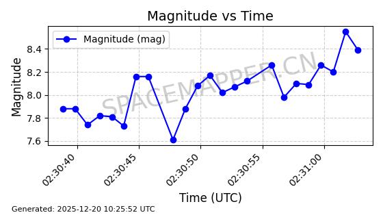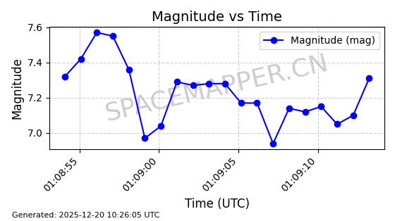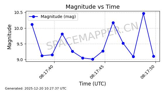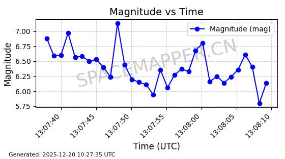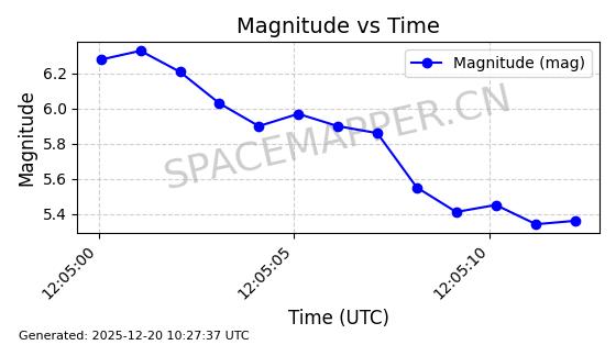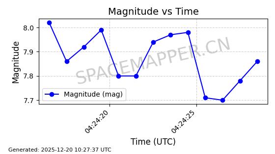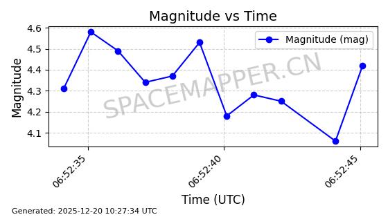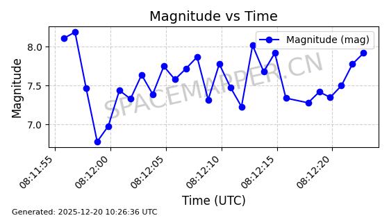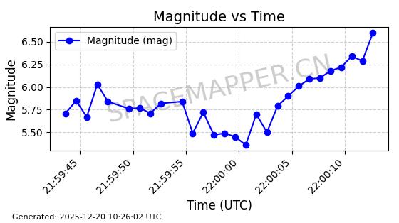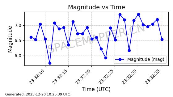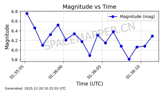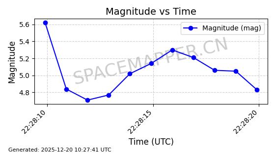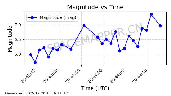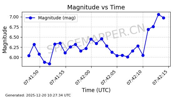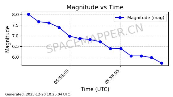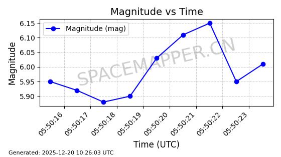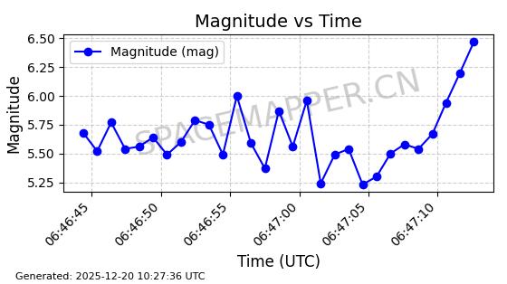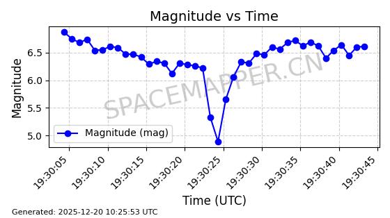 | STARLINK-32517 | 61980 | 61980 | 2024-11-14 同日期轨道 2024-210X 同批次轨道 | 在轨 | 94分钟 | 43.0047 | 482.031 | 484.023 | 0.0001451 | 2025-12-19 02:54:05 | ||