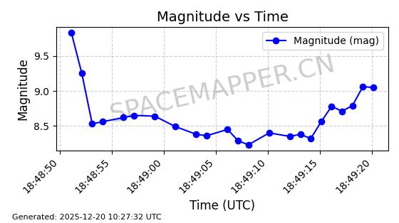 | STARLINK-32583 | 61955 | 61955 | 2024-11-14 同日期轨道 2024-209S 同批次轨道 | 在轨 | 94分钟 | 53.1560 | 474.768 | 475.648 | 0.0000641 | 2025-12-18 18:09:21 | ||