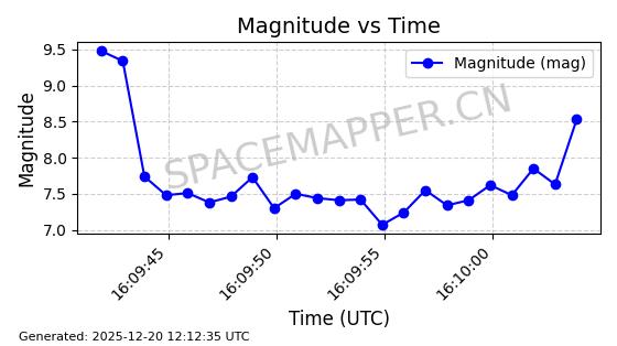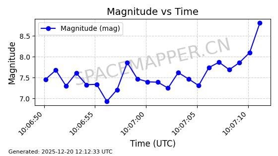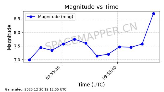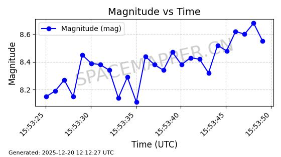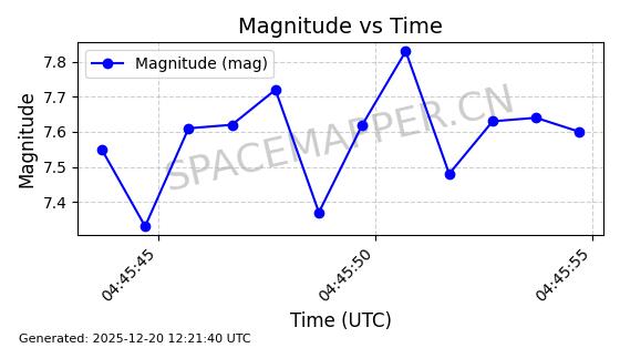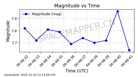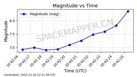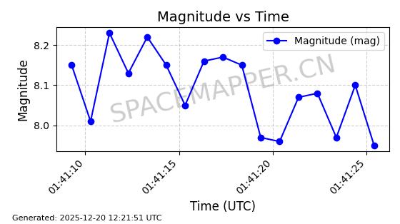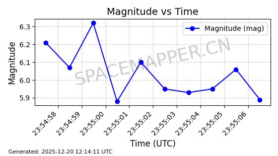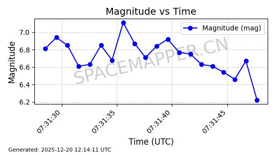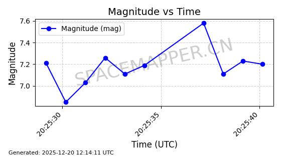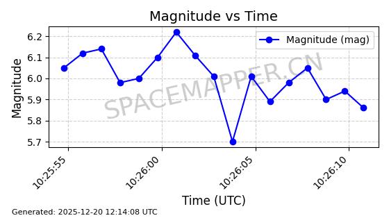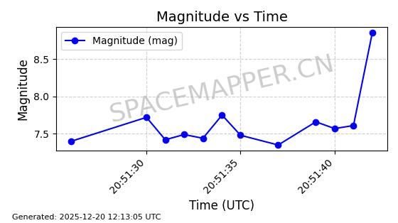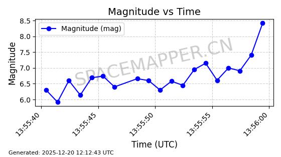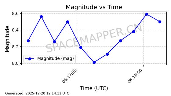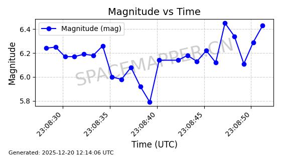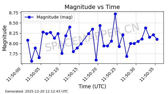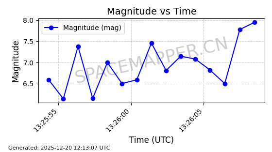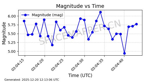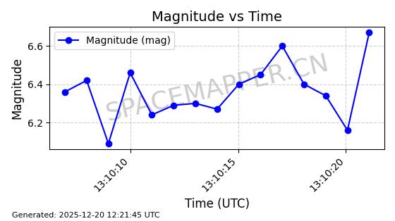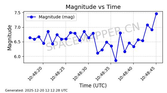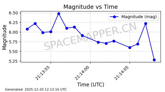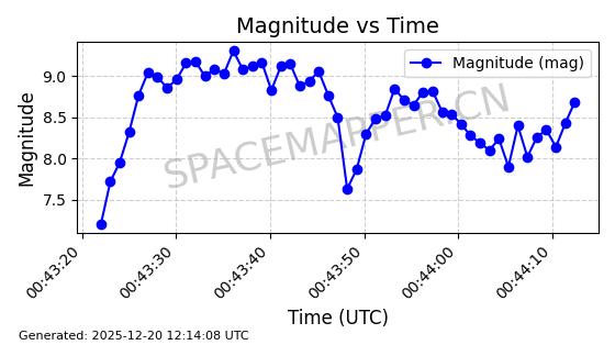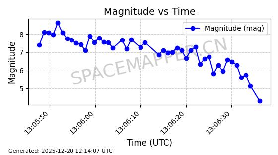 | STARLINK-3322 | 50838 | 50838 | 2022-01-06 同日期轨道 2022-001AM 同批次轨道 | 已陨落 | 87分钟 | 53.1592 | 142.357 | 146.075 | 0.0002849 | 2025-12-06 13:58:44 | ||