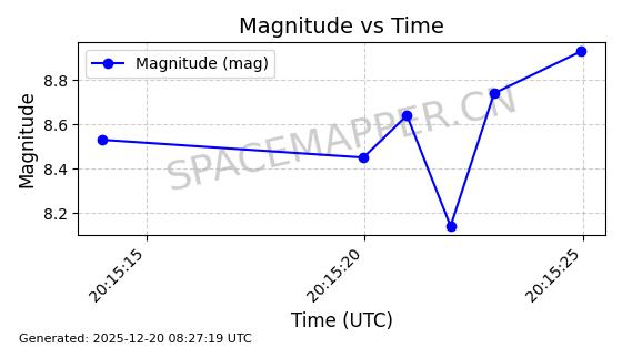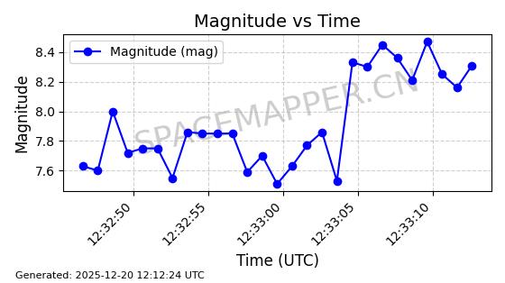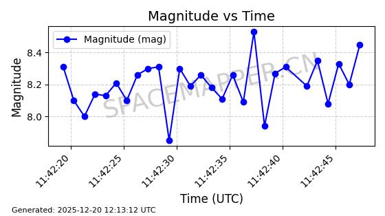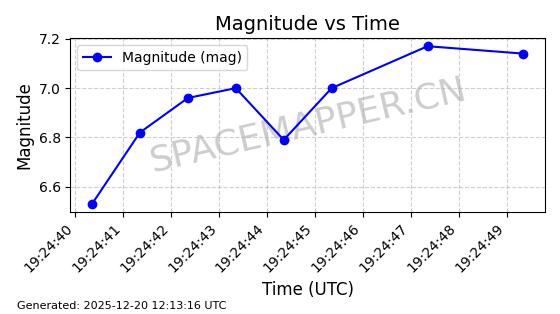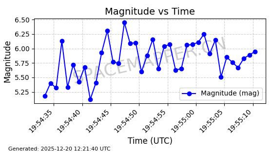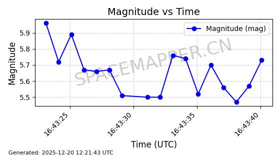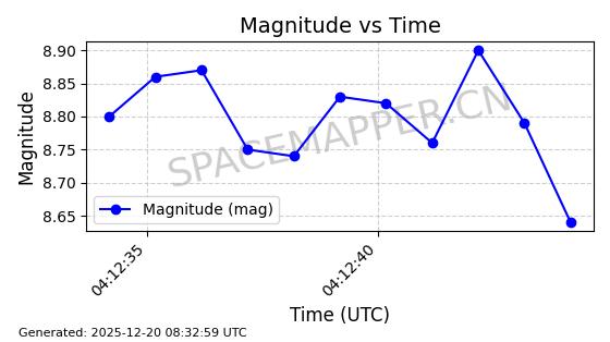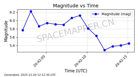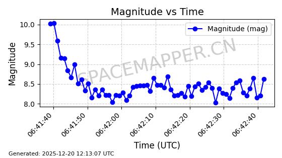 | STARLINK-33562 | 62102 | 62102 | 2024-11-25 同日期轨道 2024-220Q 同批次轨道 | 在轨 | 94分钟 | 42.9984 | 482.157 | 483.823 | 0.0001214 | 2025-12-19 04:58:42 | ![]() | |