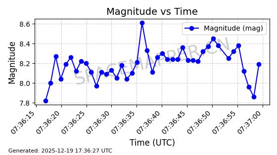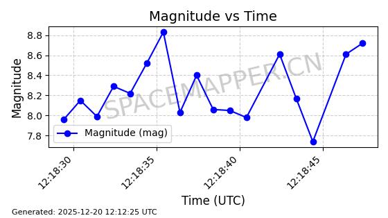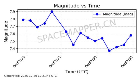 | STARLINK-3387 | 51125 | 51125 | 2022-01-19 同日期轨道 2022-005X 同批次轨道 | 在轨 | 95分钟 | 53.2198 | 538.841 | 540.607 | 0.0001276 | 2025-12-19 06:27:15 | ||