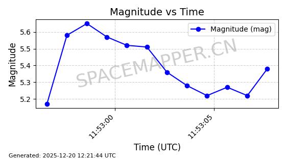 | STARLINK-3398 | 51120 | 51120 | 2022-01-19 同日期轨道 2022-005S 同批次轨道 | 在轨 | 95分钟 | 53.2180 | 538.445 | 541.007 | 0.0001851 | 2025-12-19 02:35:24 | ||