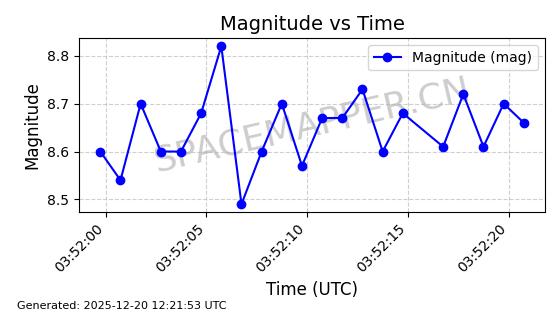| STARLINK-3312 | 50850 | 50850 | 2022-01-06 同日期轨道 2022-001AZ 同批次轨道 | 在轨 | 95分钟 | 53.2186 | 538.822 | 540.696 | 0.0001354 | 2025-12-18 15:51:30 | ||