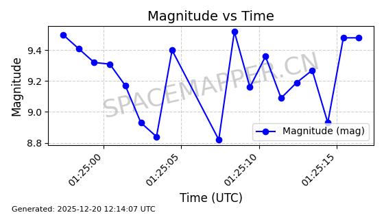 | STARLINK-3309 | 50158 | 50158 | 2021-12-18 同日期轨道 2021-125C 同批次轨道 | 已陨落 | 87分钟 | 53.2003 | 146.473 | 148.709 | 0.0001712 | 2025-11-23 00:23:54 | ||