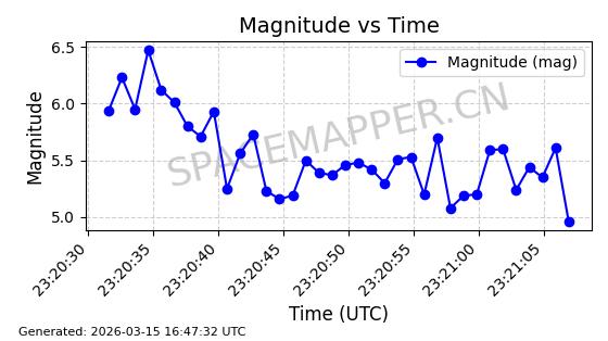 | STARLINK-6301 | 56392 | 56392 | 2023-05-04 同日期轨道 2023-061U 同批次轨道 | 在轨 | 95分钟 | 43.0006 | 534.448 | 536.524 | 0.0001500 | 2026-03-13 22:00:02 | ||