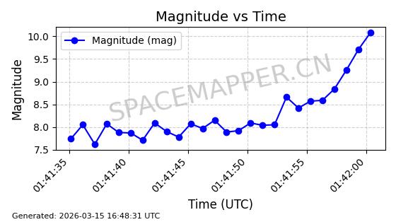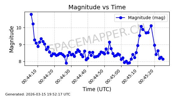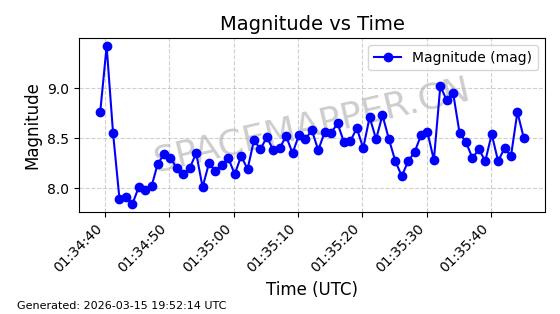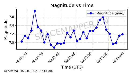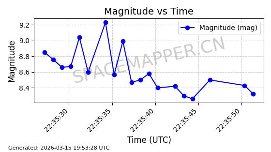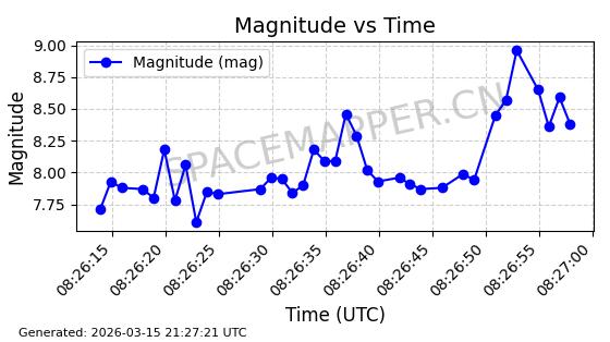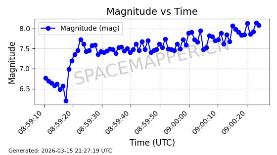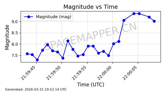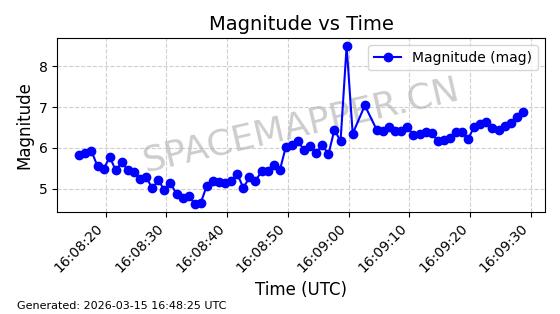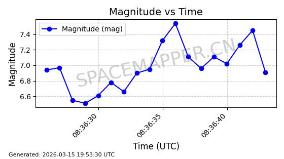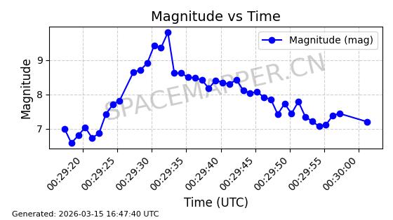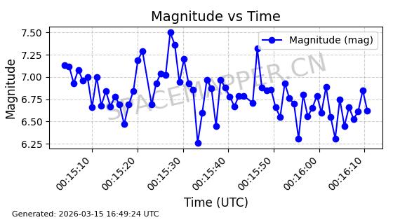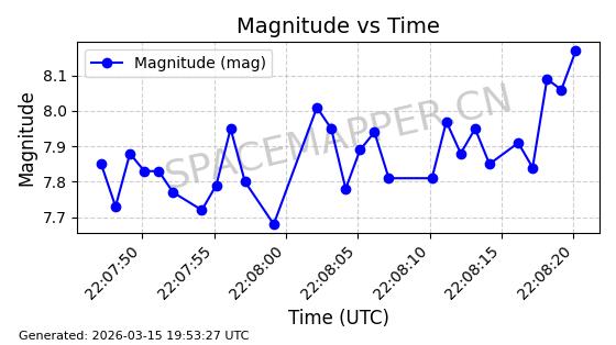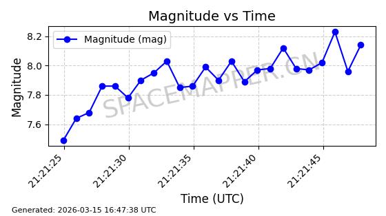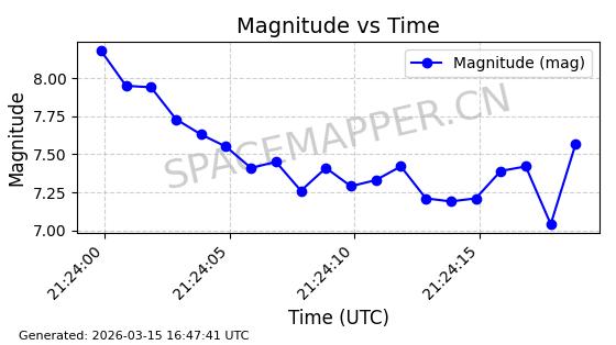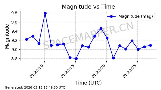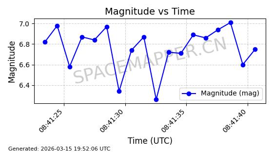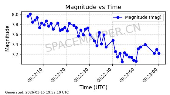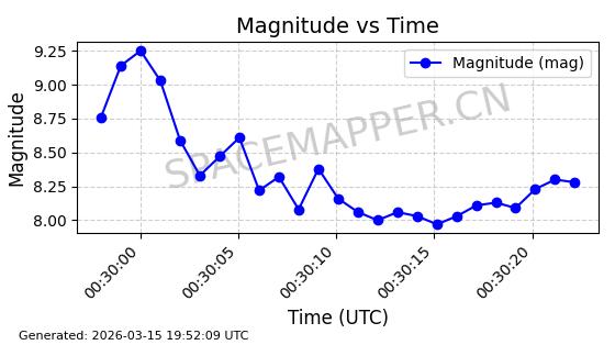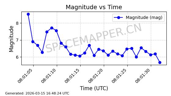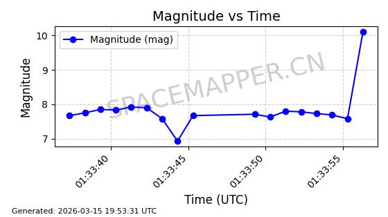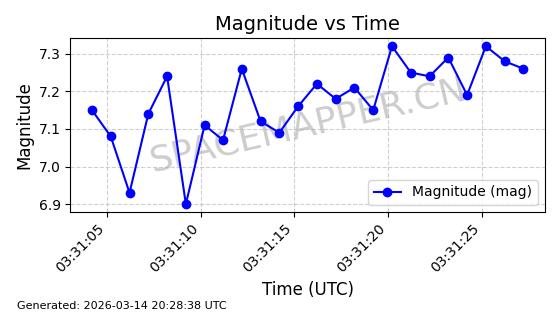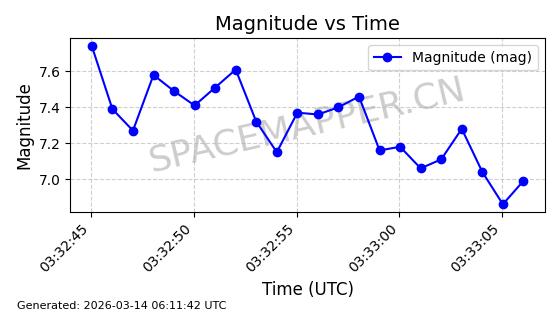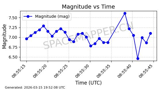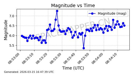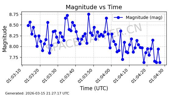 | 卫星名称 | AOE ID | NORAD ID | 发射日期 国际编号 | 在轨状态 | 轨道周期 | 轨道倾角 (度) | 近地点 (Km) | 远地点 (Km) | 偏心率 | 更新时间 (UTC) | 近期光变曲线 | 服务 |