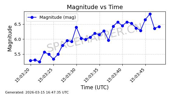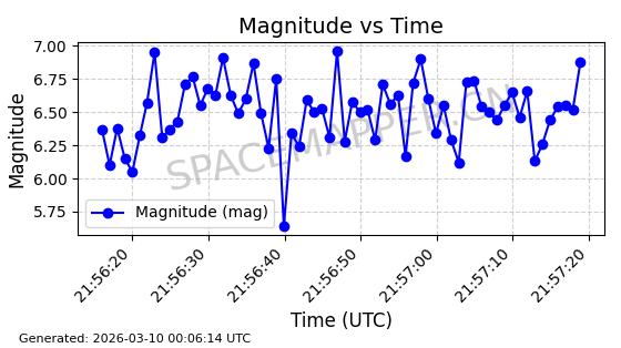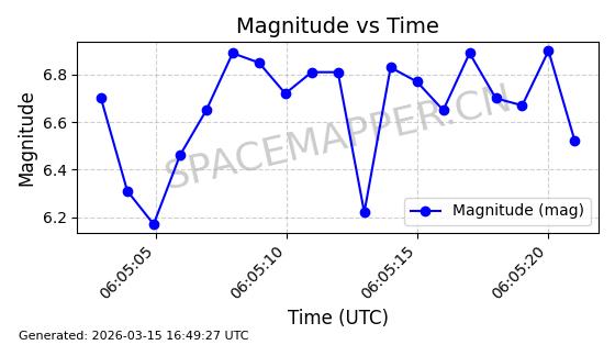 | STARLINK-6284 | 56403 | 56403 | 2023-05-04 同日期轨道 2023-061AF 同批次轨道 | 已陨落 | 88分钟 | 42.9891 | 159.734 | 164.082 | 0.0003324 | 2026-03-04 12:43:35 | ||
