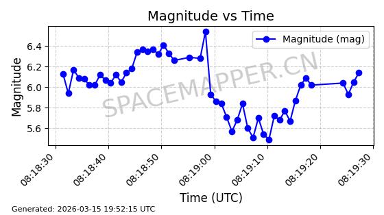 | STARLINK-6160 | 56382 | 56382 | 2023-05-04 同日期轨道 2023-061J 同批次轨道 | 在轨 | 95分钟 | 42.9999 | 516.433 | 518.523 | 0.0001515 | 2026-03-13 22:00:02 | ||