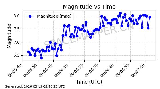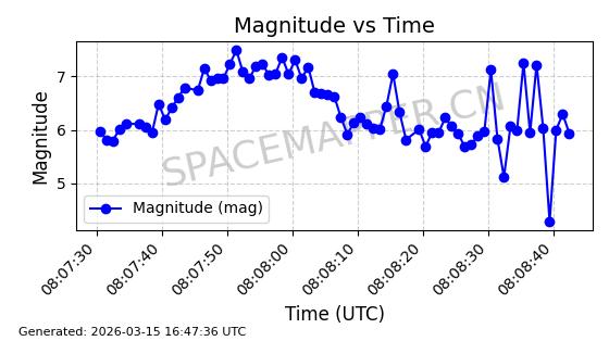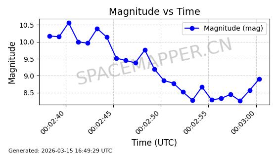 | STARLINK-6300 | 56390 | 56390 | 2023-05-04 同日期轨道 2023-061S 同批次轨道 | 已陨落 | 88分钟 | 42.9831 | 177.734 | 191.416 | 0.0010424 | 2025-03-08 03:46:37 | ![]() | |
