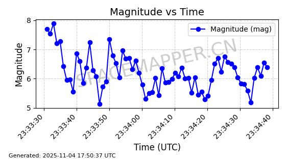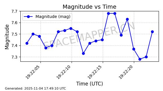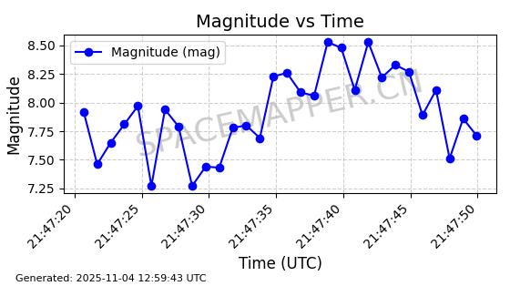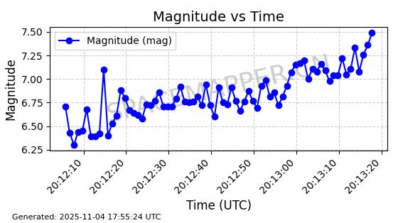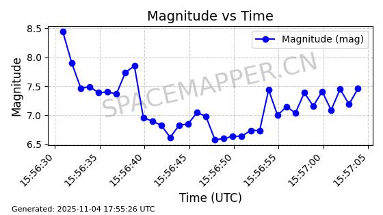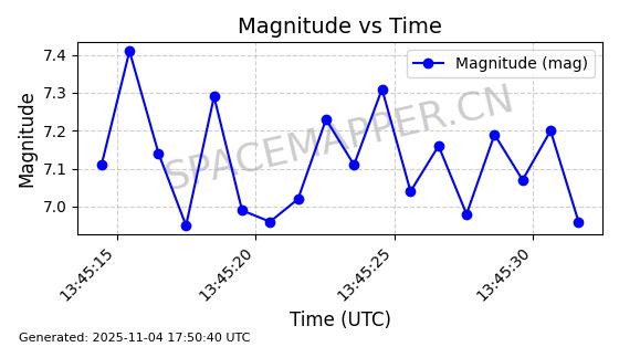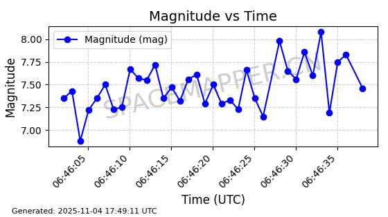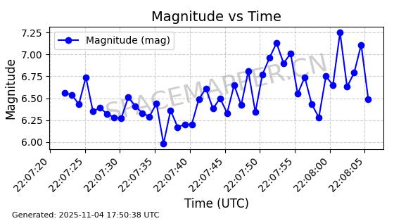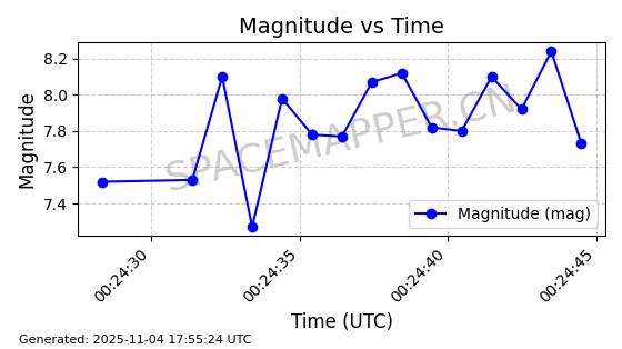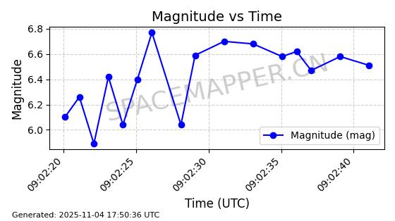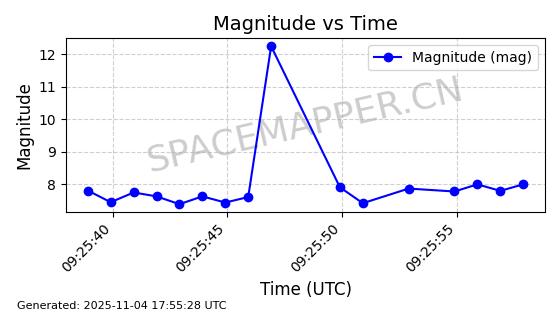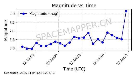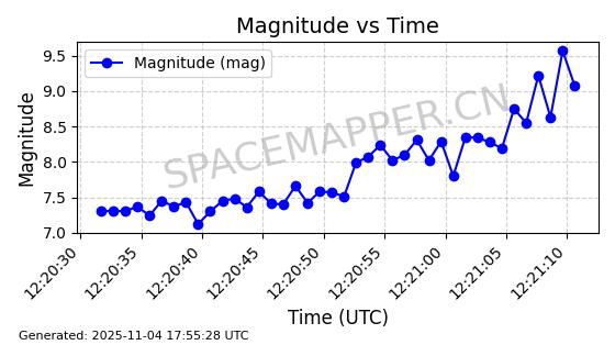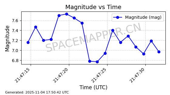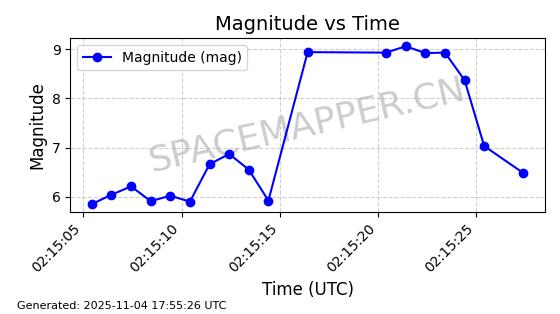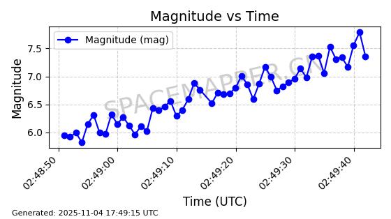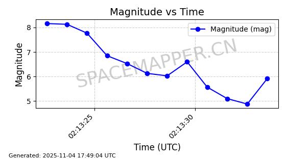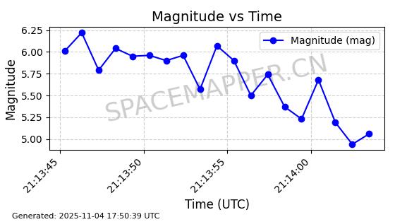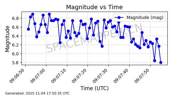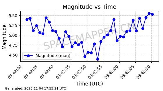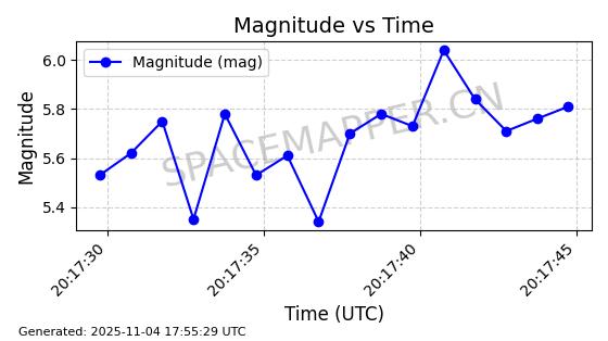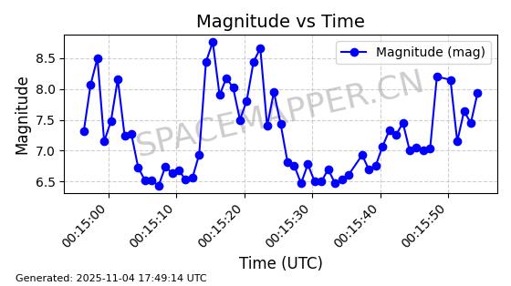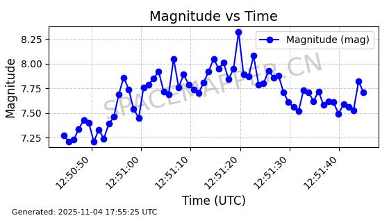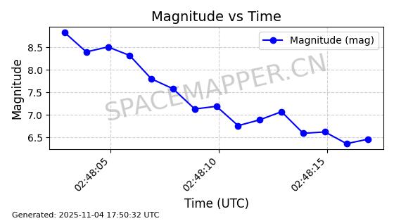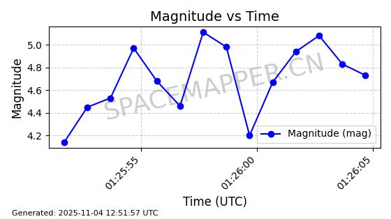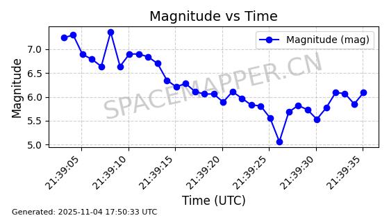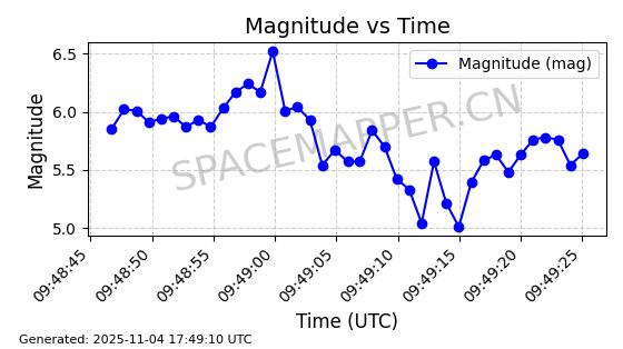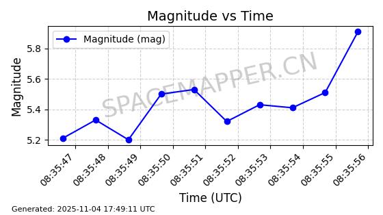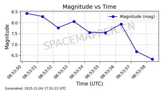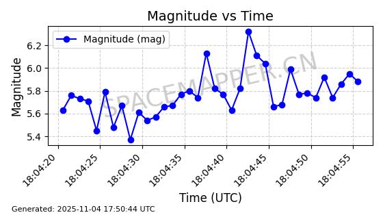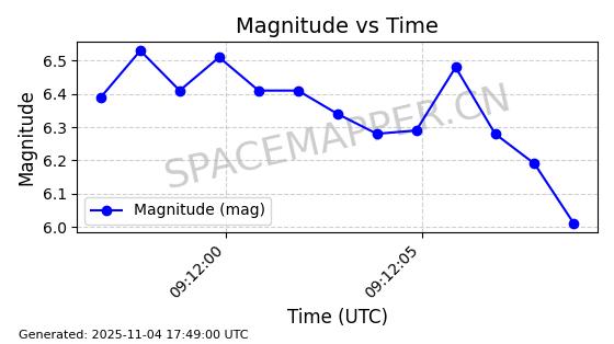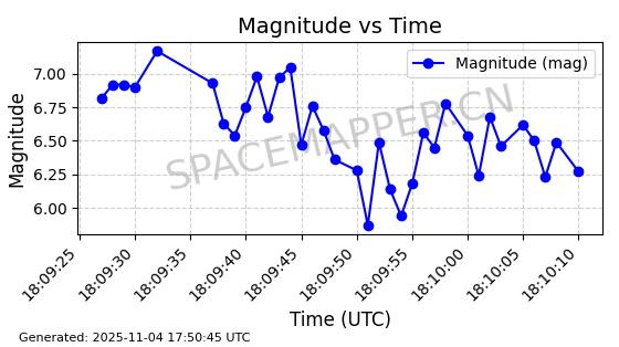| STARLINK-3672 | 51974 | 51974 | 2022-03-09 同日期轨道 2022-025U 同批次轨道  |  在轨 | 96分钟 | 53.0546 | 546.241 | 548.217 | 0.0001426 | 2025-11-02  02:21:14  |  ||
