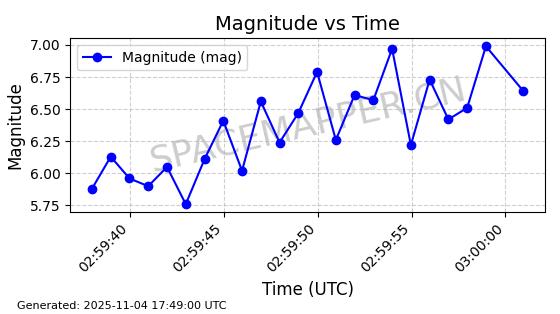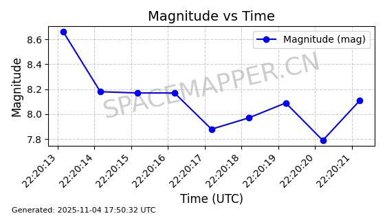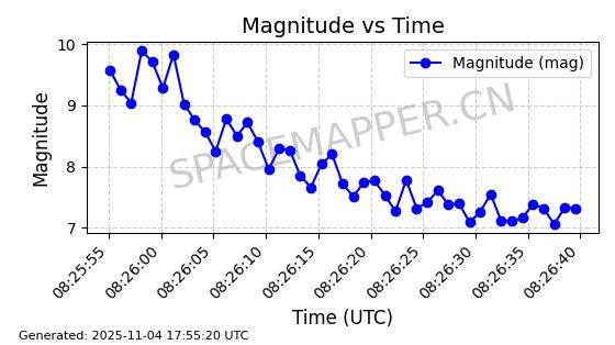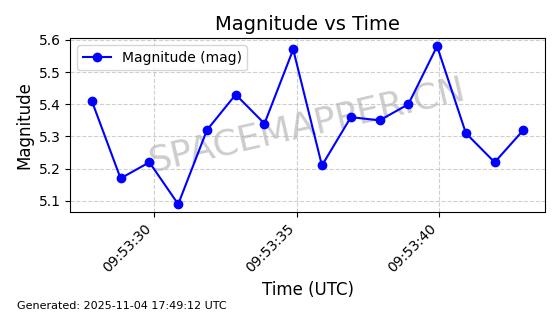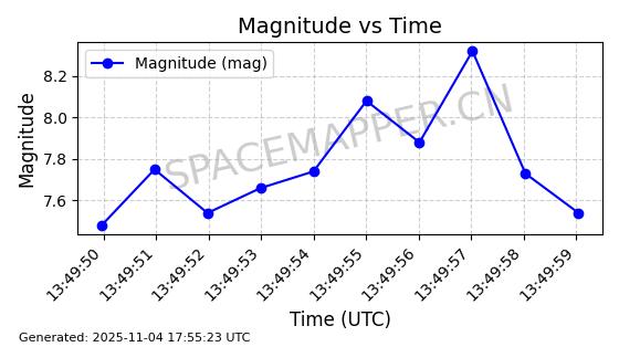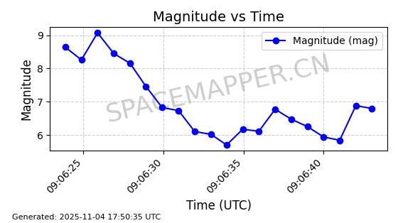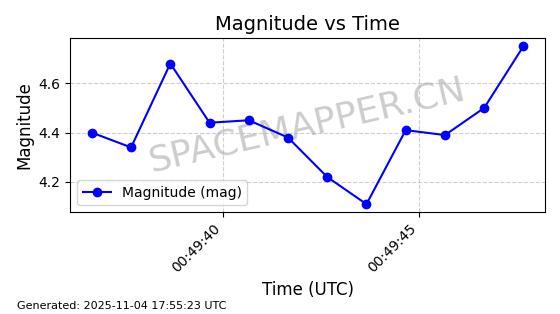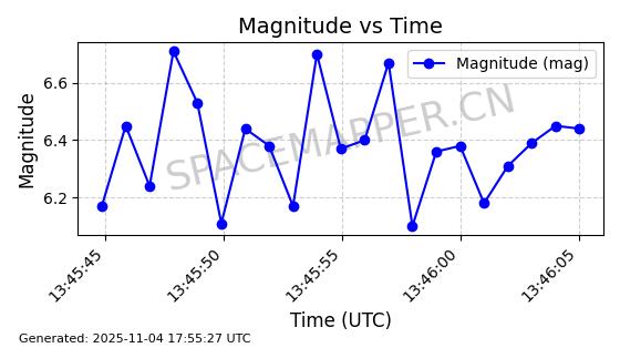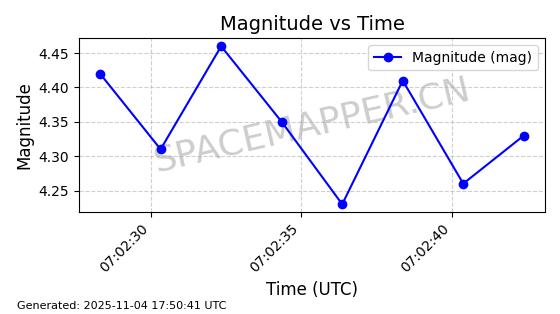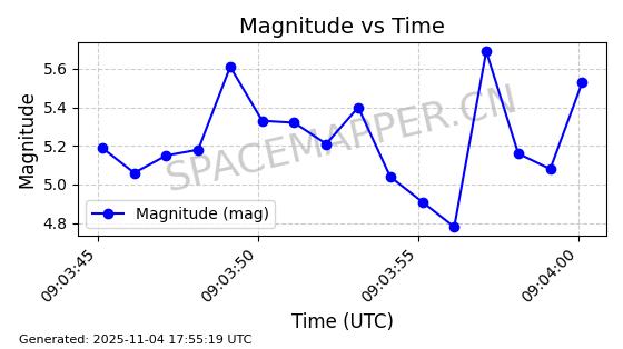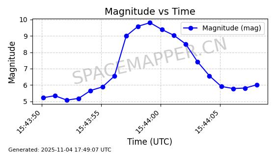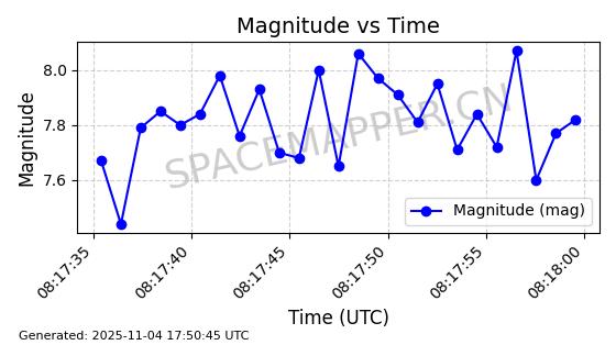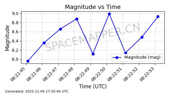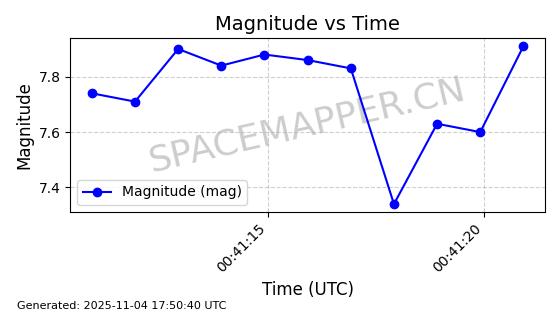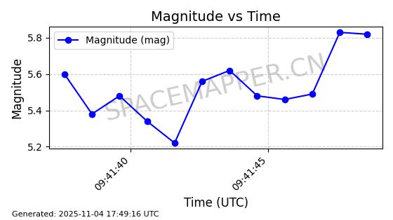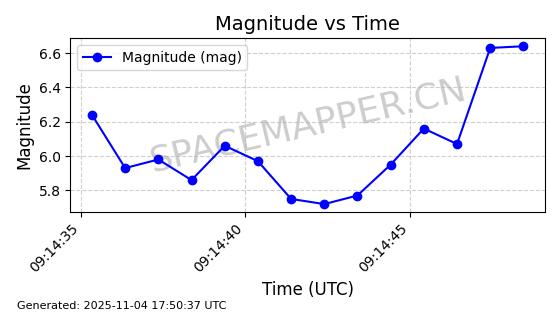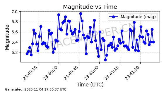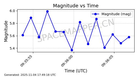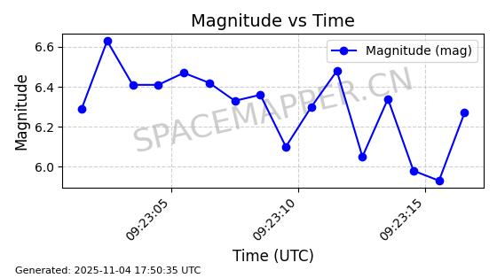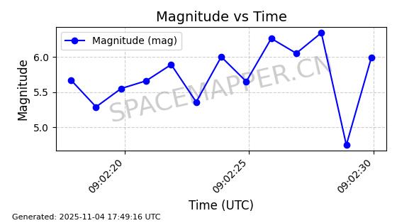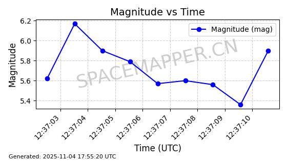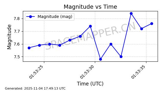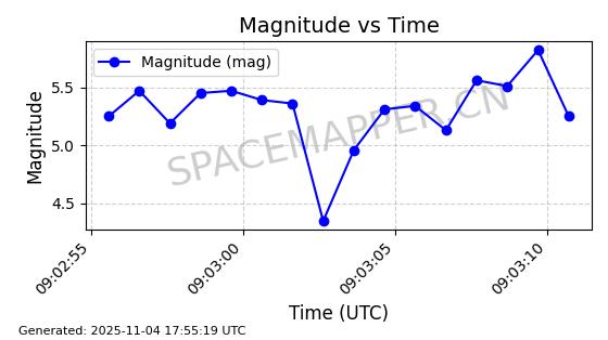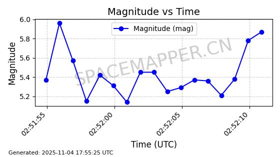 | STARLINK-3640 | 51988 | 51988 | 2022-03-09 同日期轨道 2022-025AJ 同批次轨道  |  在轨 | 95分钟 | 53.2171 | 538.813 | 540.663 | 0.0001337 | 2025-11-02  02:49:47  |  ||