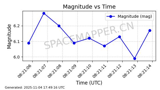 | STARLINK-3628 | 51783 | 51783 | 2022-02-25 同日期轨道 2022-017R 同批次轨道  |  在轨 | 95分钟 | 53.2173 | 538.759 | 540.715 | 0.0001413 | 2025-11-02  09:41:52  |  ||