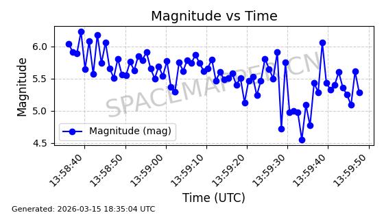 | STARLINK-5959 | 56454 | 56454 | 2023-05-10 同日期轨道 2023-064G 同批次轨道 | 在轨 | 96分钟 | 69.9994 | 569.798 | 574.35 | 0.0003274 | 2026-03-15 06:43:49 | ||