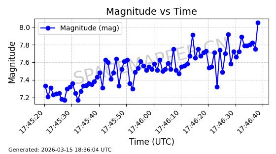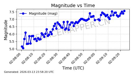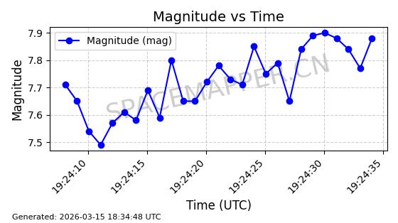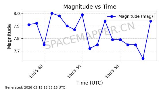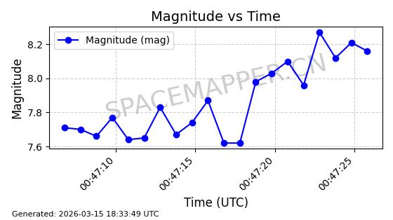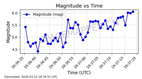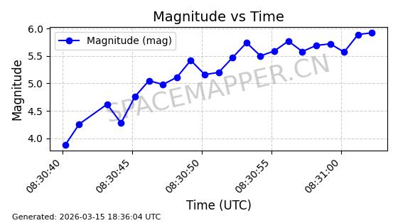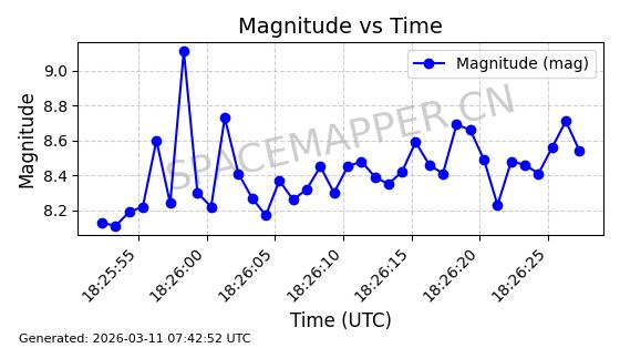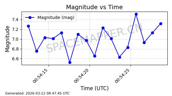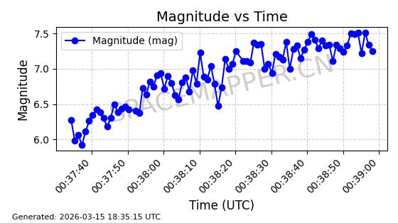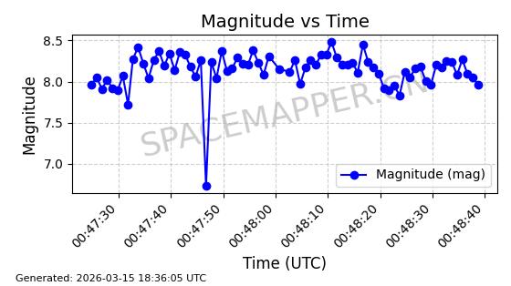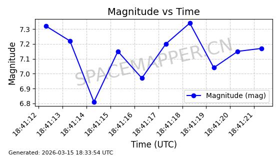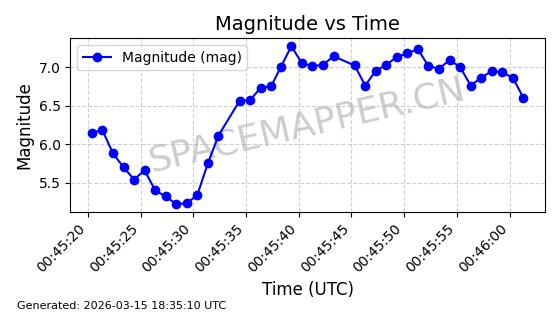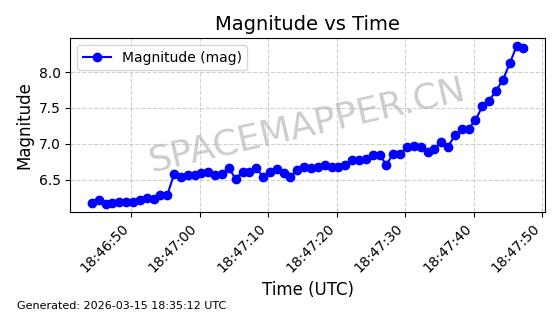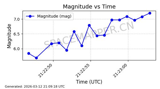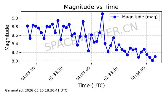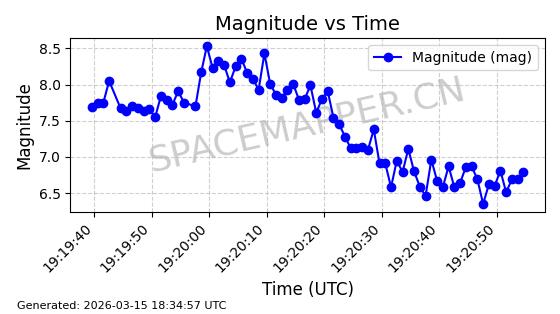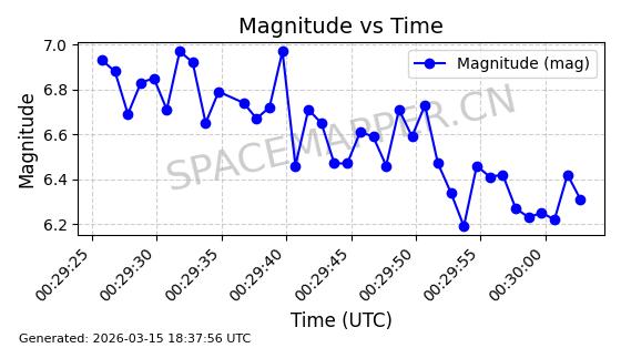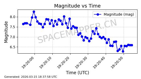 | STARLINK-6047 | 56460 | 56460 | 2023-05-10 同日期轨道 2023-064N 同批次轨道 | 在轨 | 96分钟 | 69.9994 | 570.003 | 574.099 | 0.0002946 | 2026-03-15 06:31:47 | ||