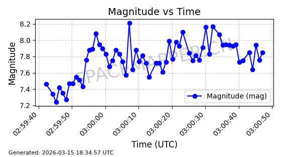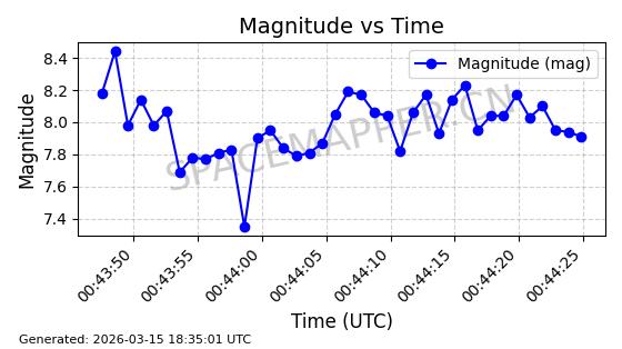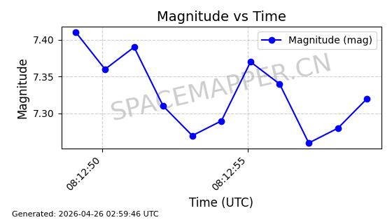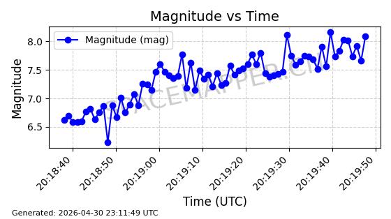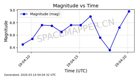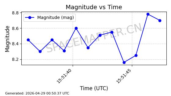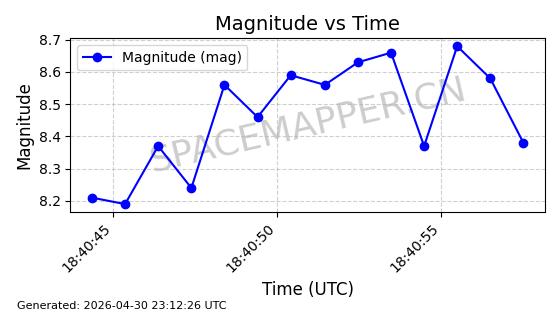 | 卫星名称 | AOE ID | NORAD ID | 发射日期 国际编号 | 在轨状态 | 轨道周期 | 轨道倾角 (度) | 近地点 (Km) | 远地点 (Km) | 偏心率 | 更新时间 (UTC) | 近期光变曲线 | 服务 |