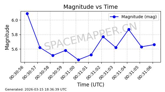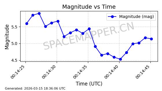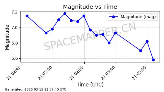 | STARLINK-6312 | 56536 | 56536 | 2023-05-14 同日期轨道 2023-065AK 同批次轨道 | 在轨 | 96分钟 | 43.0006 | 546.239 | 548.401 | 0.0001560 | 2026-03-15 06:00:01 | ||