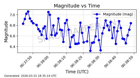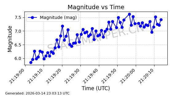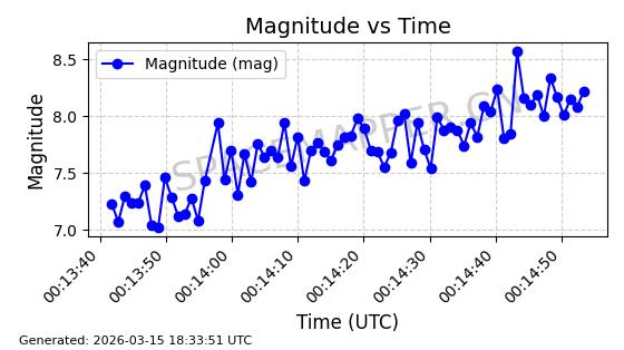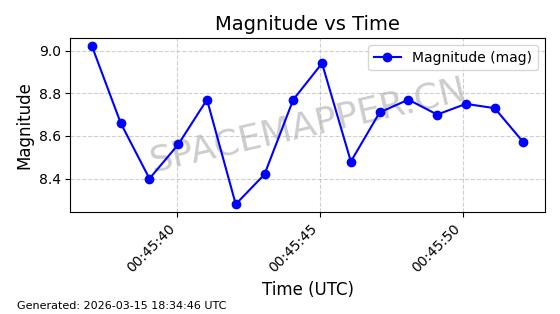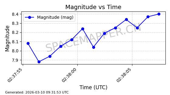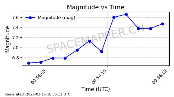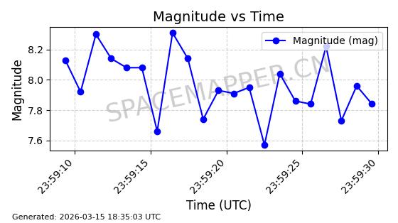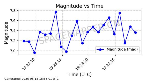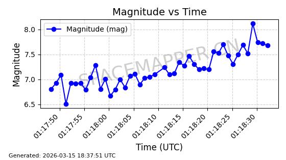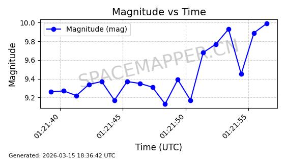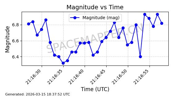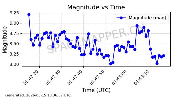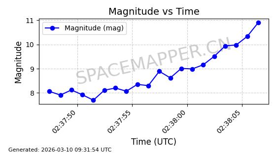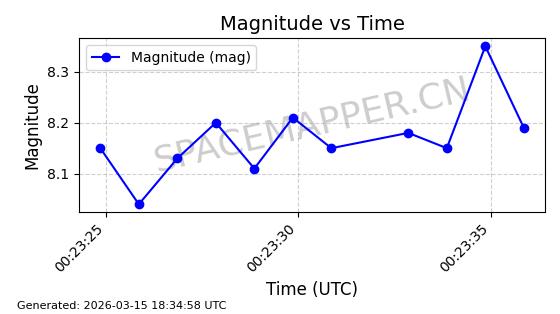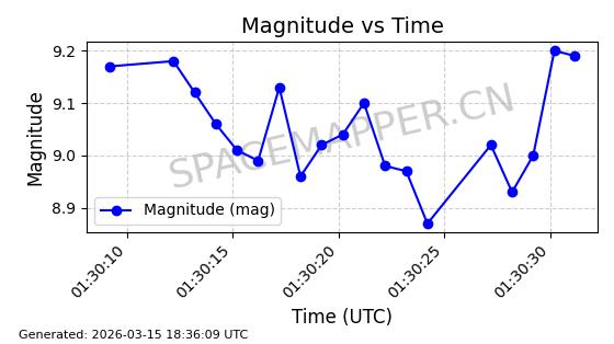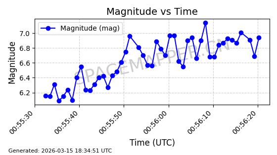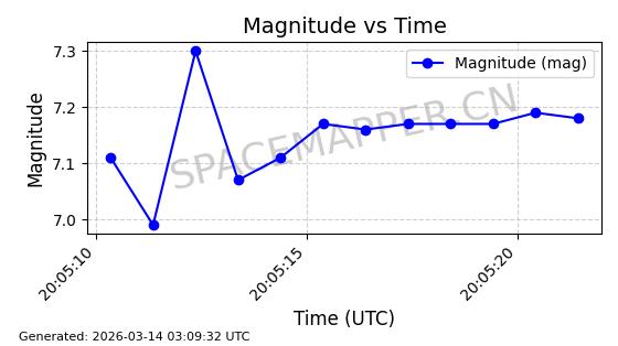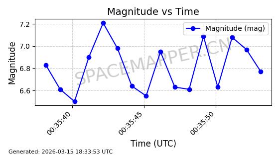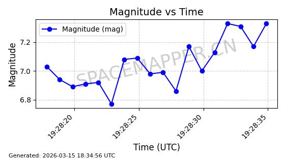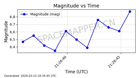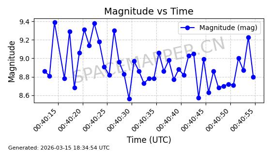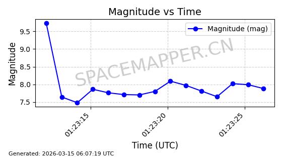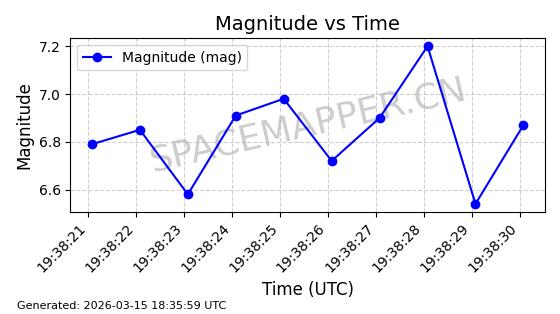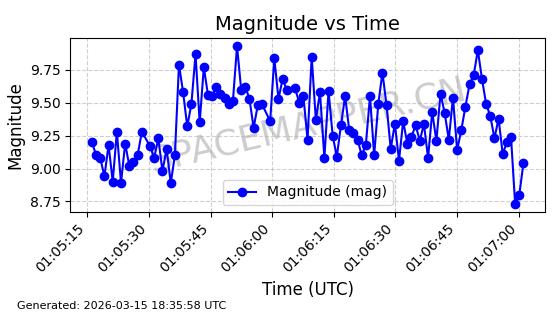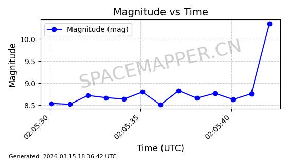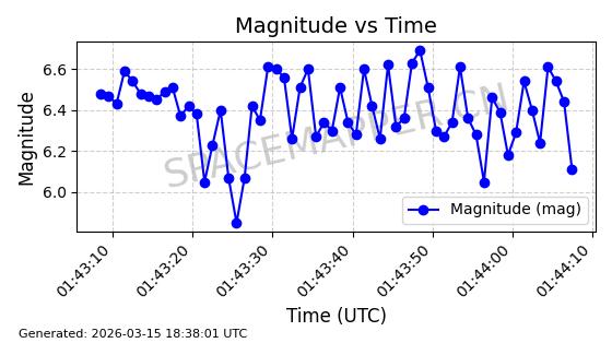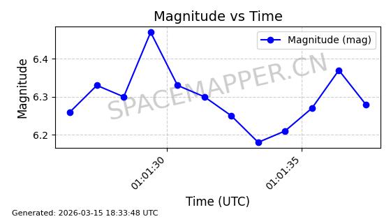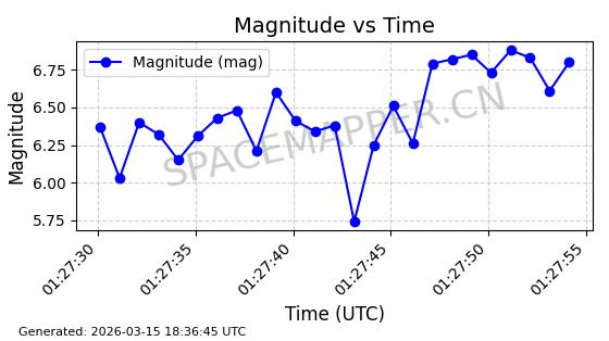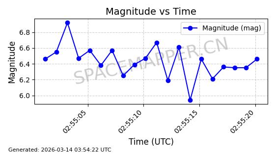 | STARLINK-6201 | 56486 | 56486 | 2023-05-10 同日期轨道 2023-064AQ 同批次轨道 | 在轨 | 89分钟 | 69.9878 | 228.069 | 233.917 | 0.0004424 | 2026-03-15 02:53:20 | ||