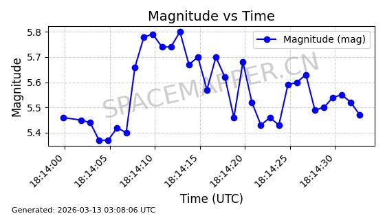 | STARLINK-5518 | 56469 | 56469 | 2023-05-10 同日期轨道 2023-064X 同批次轨道 | 在轨 | 96分钟 | 69.9989 | 569.989 | 574.125 | 0.0002975 | 2026-03-15 05:25:23 | ||