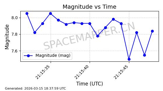 | STARLINK-5351 | 56511 | 56511 | 2023-05-14 同日期轨道 2023-065J 同批次轨道 | 在轨 | 95分钟 | 43.0003 | 526.925 | 529.451 | 0.0001828 | 2026-03-15 06:00:01 | ||
