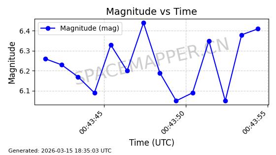 | STARLINK-6309 | 56535 | 56535 | 2023-05-14 同日期轨道 2023-065AJ 同批次轨道 | 在轨 | 96分钟 | 43.0011 | 545.399 | 546.823 | 0.0001027 | 2026-03-15 06:00:01 | ||