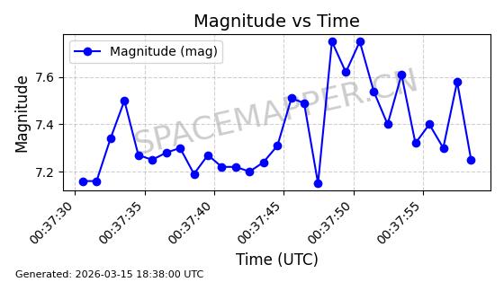 | STARLINK-5038 | 56472 | 56472 | 2023-05-10 同日期轨道 2023-064AA 同批次轨道 | 在轨 | 96分钟 | 69.9990 | 570.386 | 573.822 | 0.0002471 | 2026-03-15 06:25:29 | ||