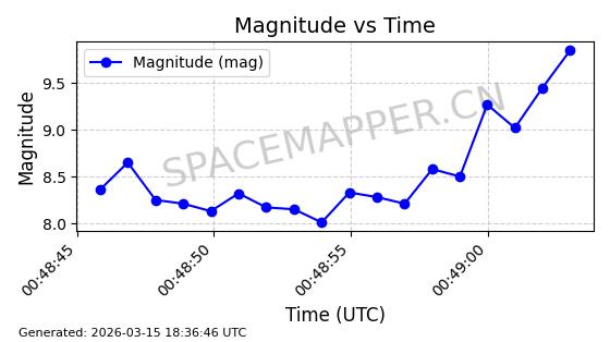 | STARLINK-6319 | 56532 | 56532 | 2023-05-14 同日期轨道 2023-065AF 同批次轨道 | 在轨 | 95分钟 | 43.0011 | 507.61 | 508.952 | 0.0000974 | 2026-03-15 06:00:01 | ||