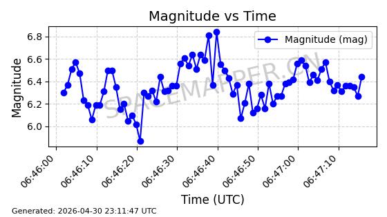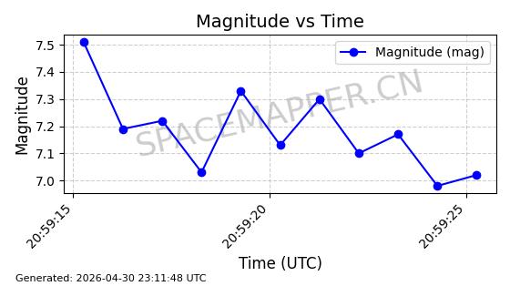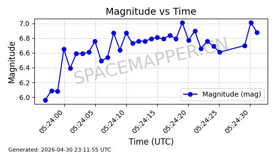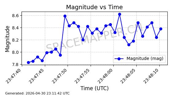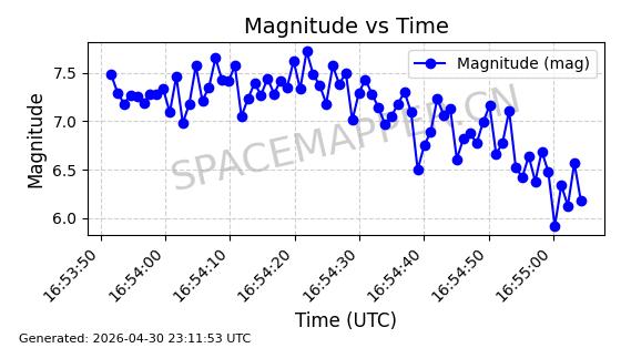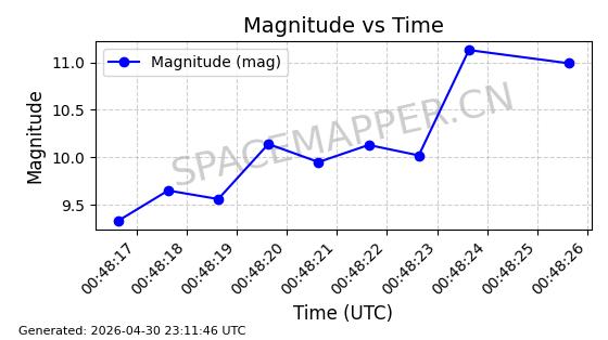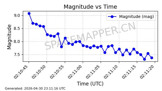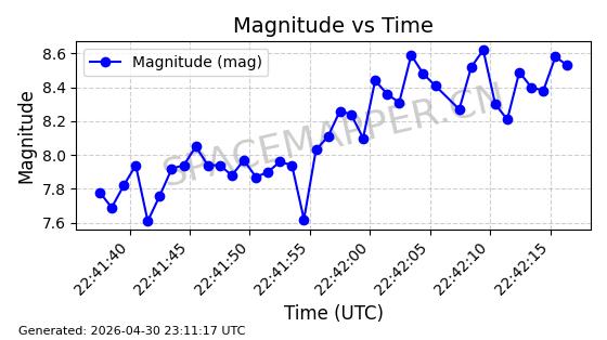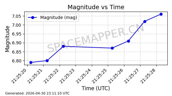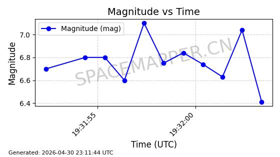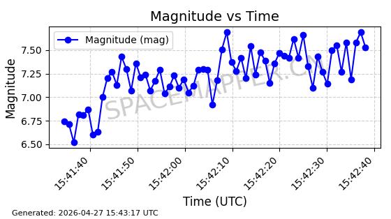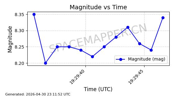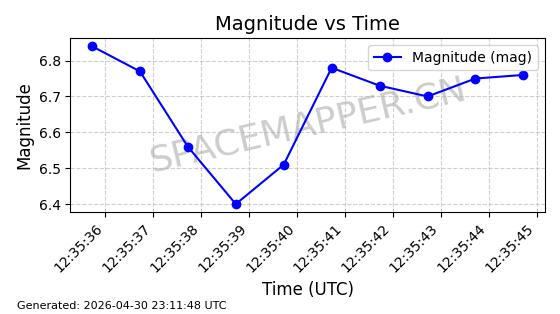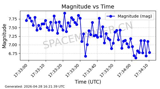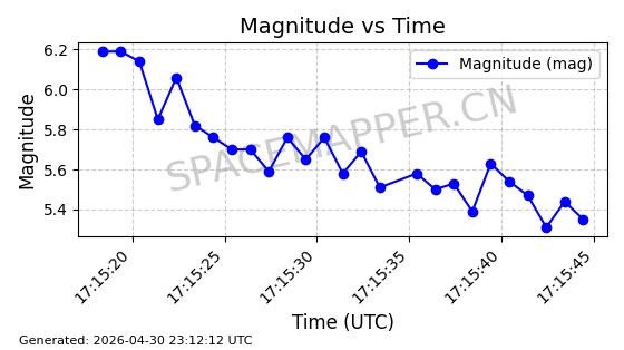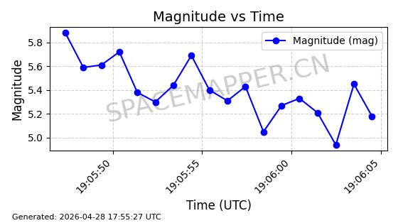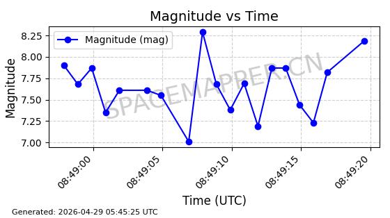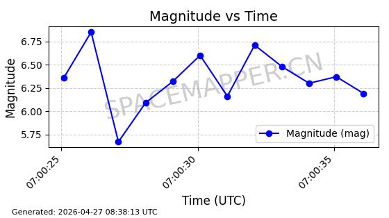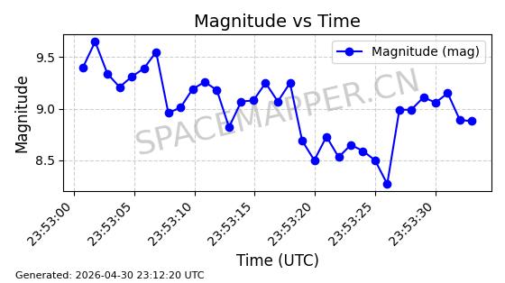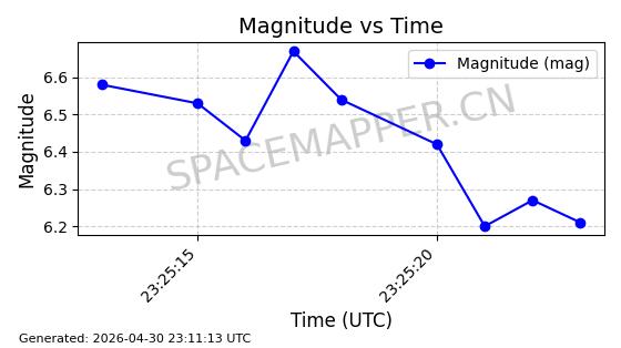 | STARLINK-3670 | 52106 | 52106 | 2022-03-19 同日期轨道 2022-029U 同批次轨道 | 在轨 | 95分钟 | 53.2160 | 539.267 | 540.195 | 0.0000670 | 2026-04-29 23:41:40 | ||