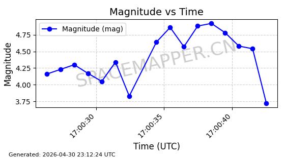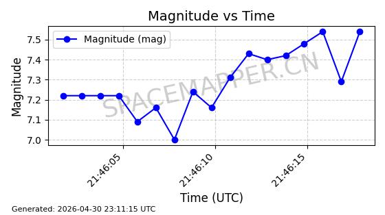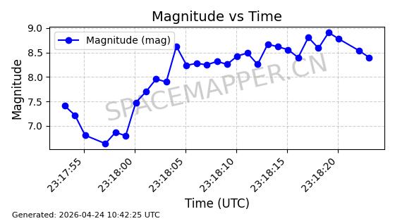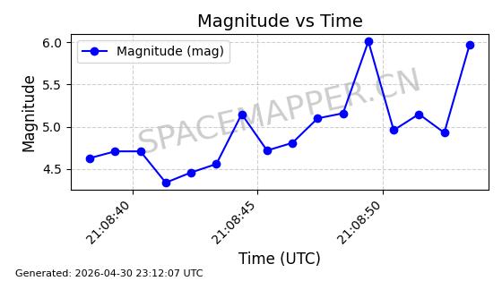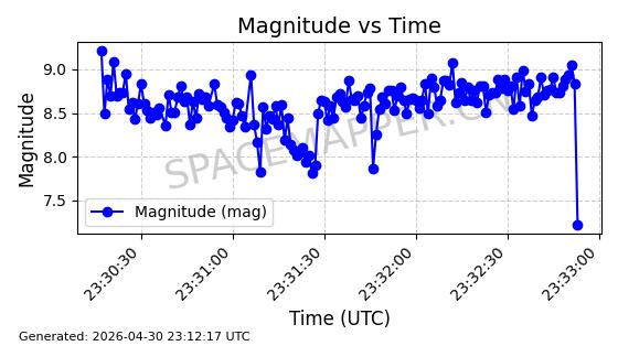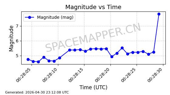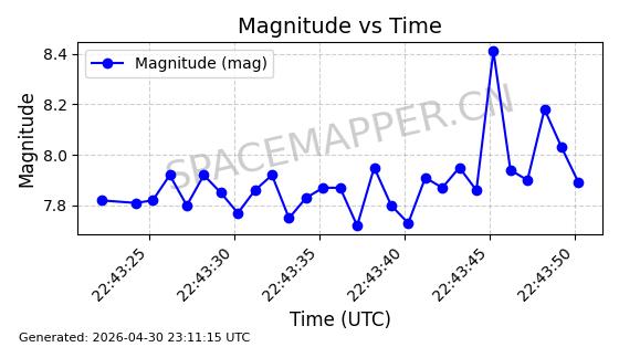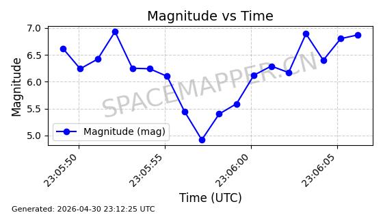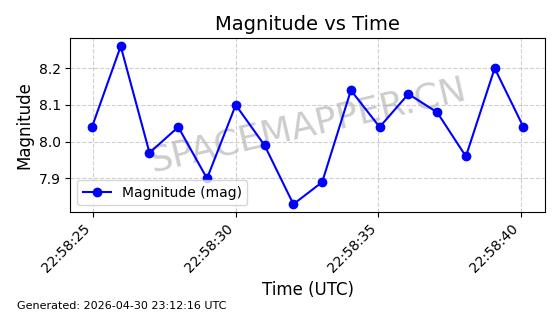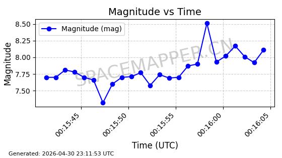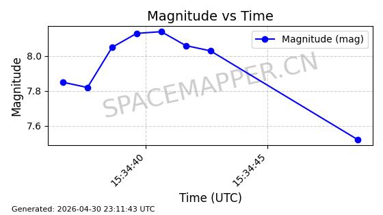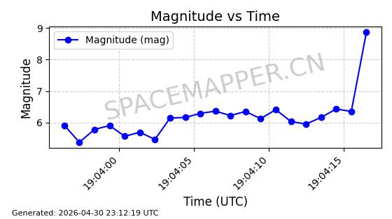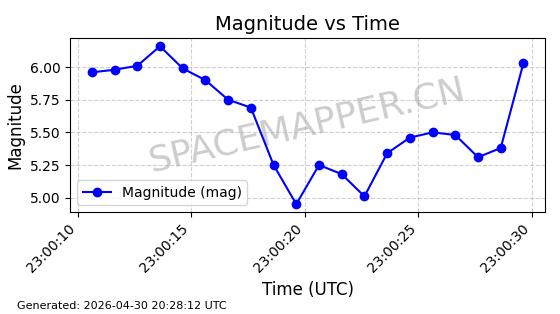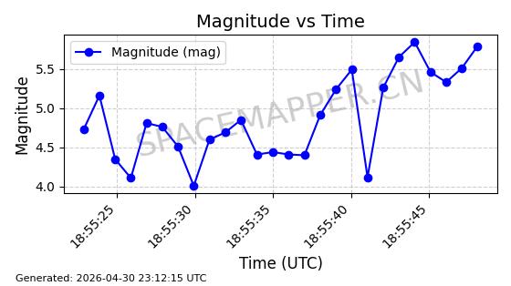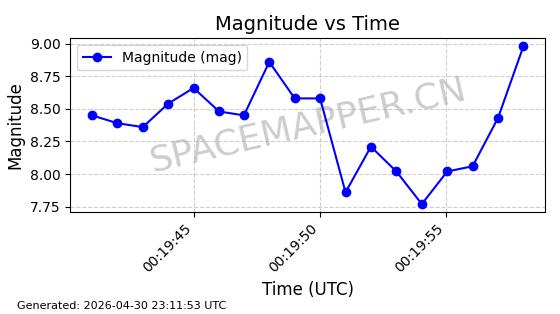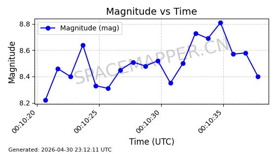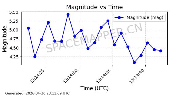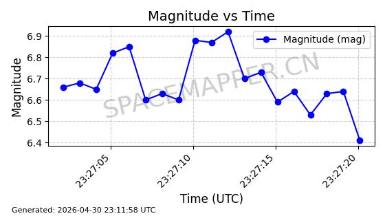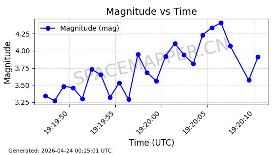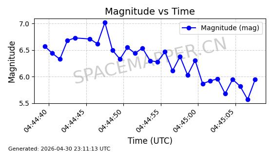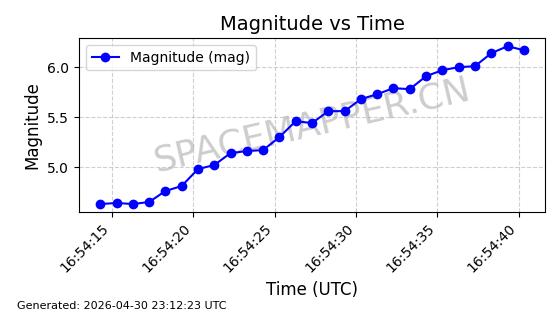 | STARLINK-3688 | 52310 | 52310 | 2022-04-21 同日期轨道 2022-041BB 同批次轨道 | 在轨 | 95分钟 | 53.2170 | 538.925 | 540.583 | 0.0001198 | 2026-04-29 23:15:10 | ||